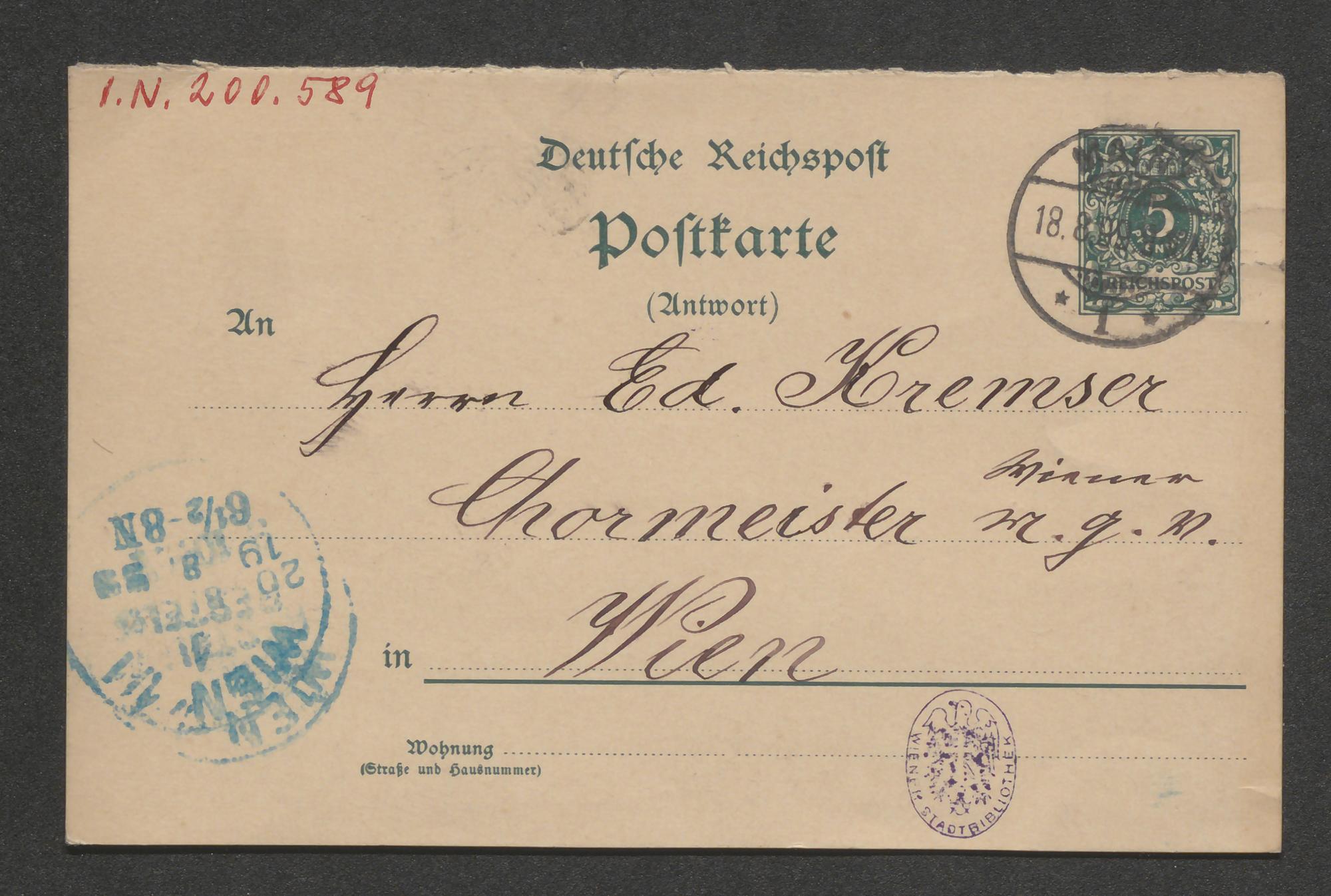 Postkarte an Eduard Kremser