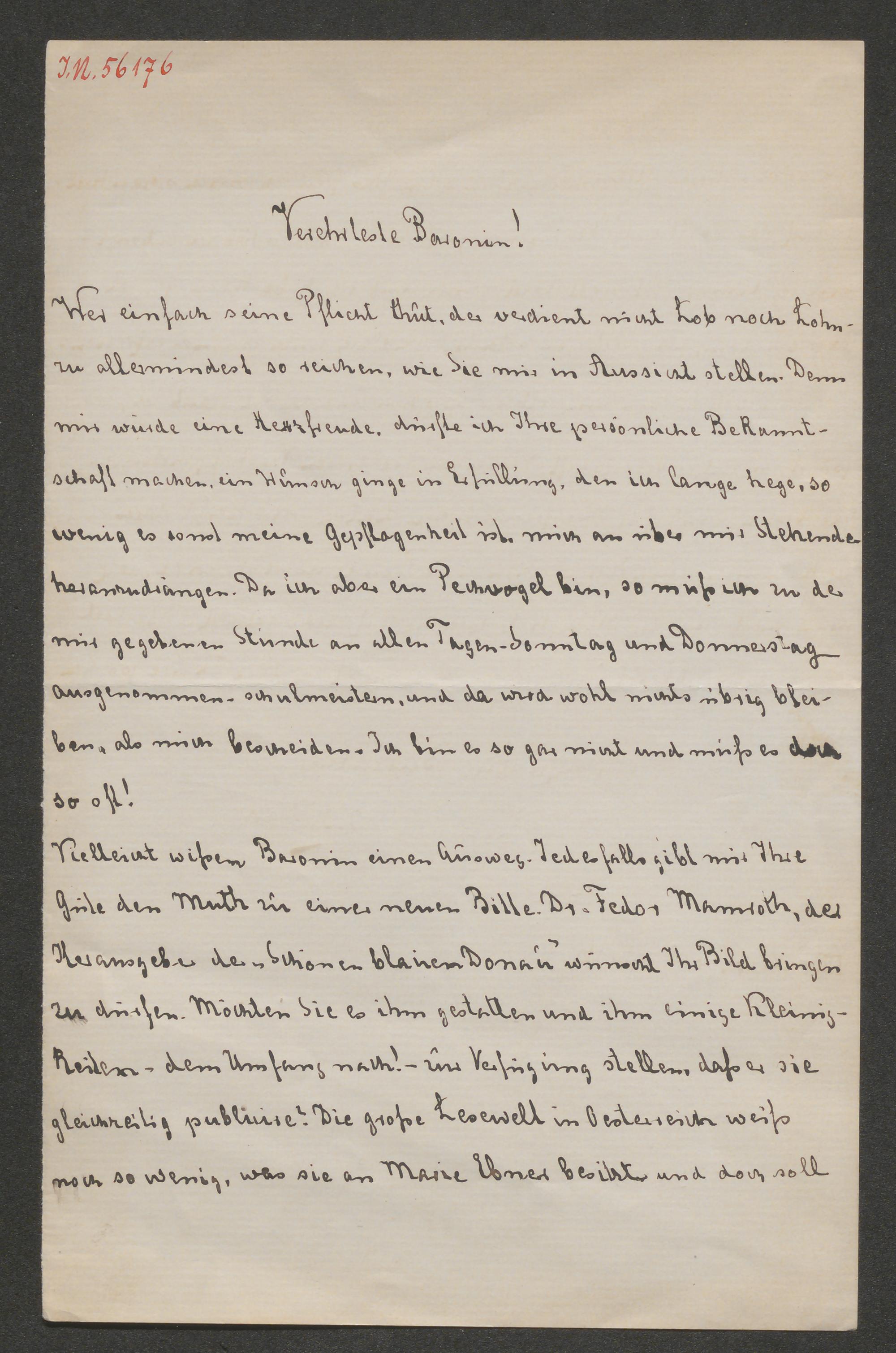Brief an Marie von Ebner-Eschenbach