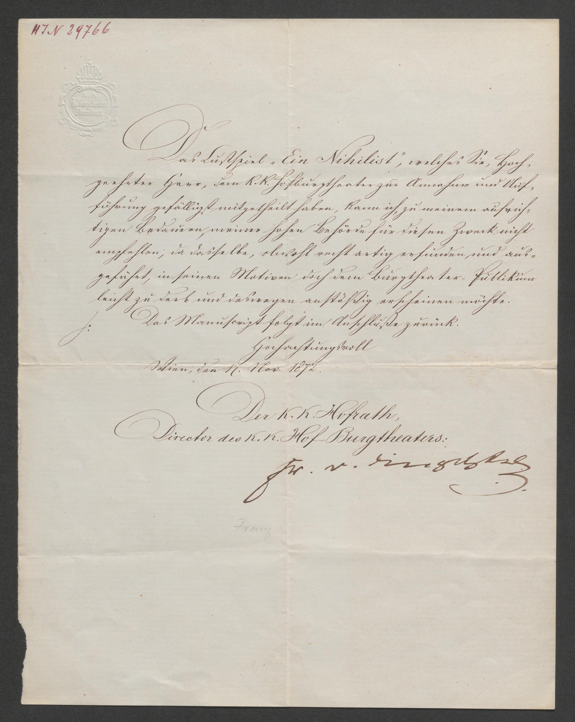 Brief an Karl Gründorf