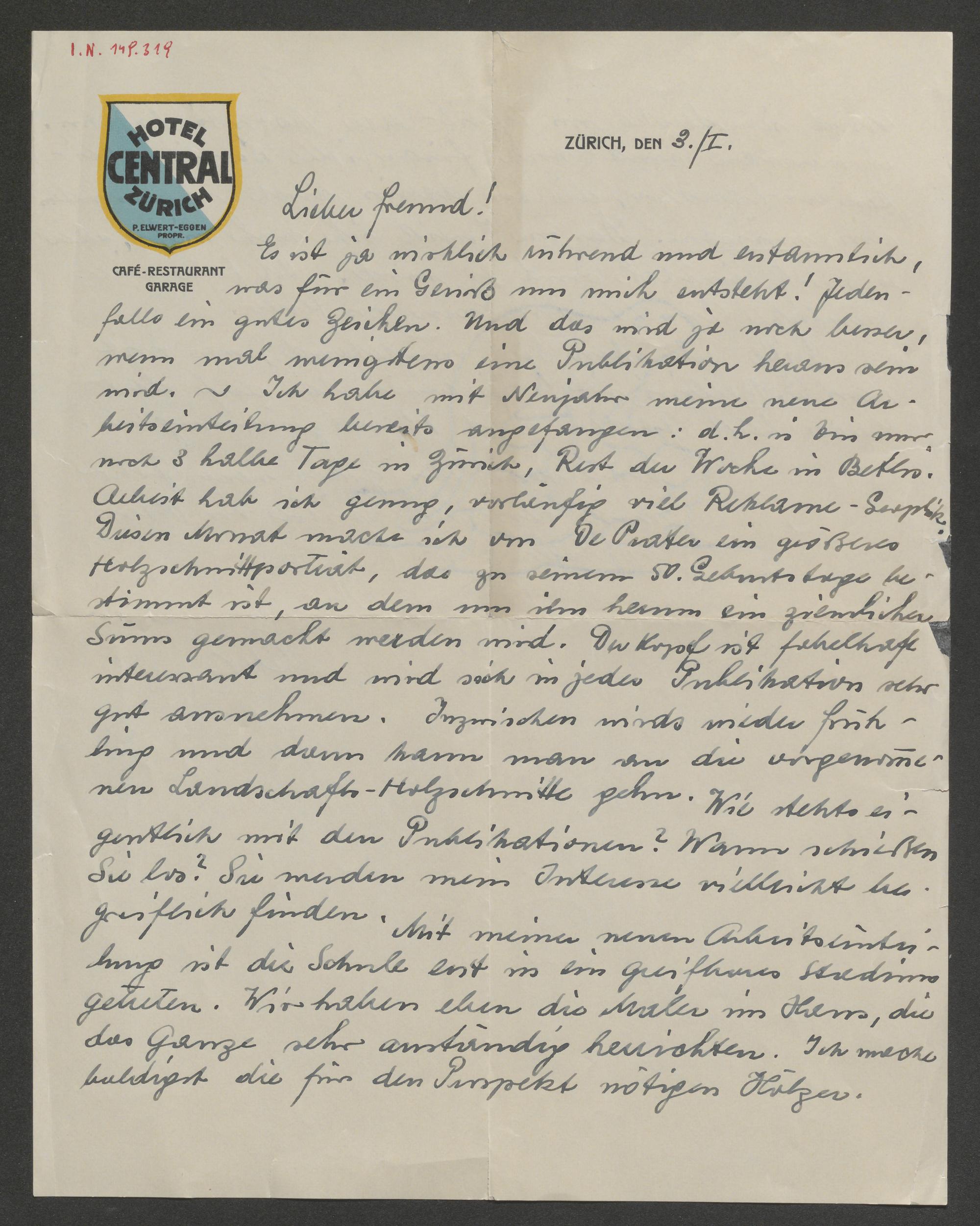 Brief an Arthur Roessler