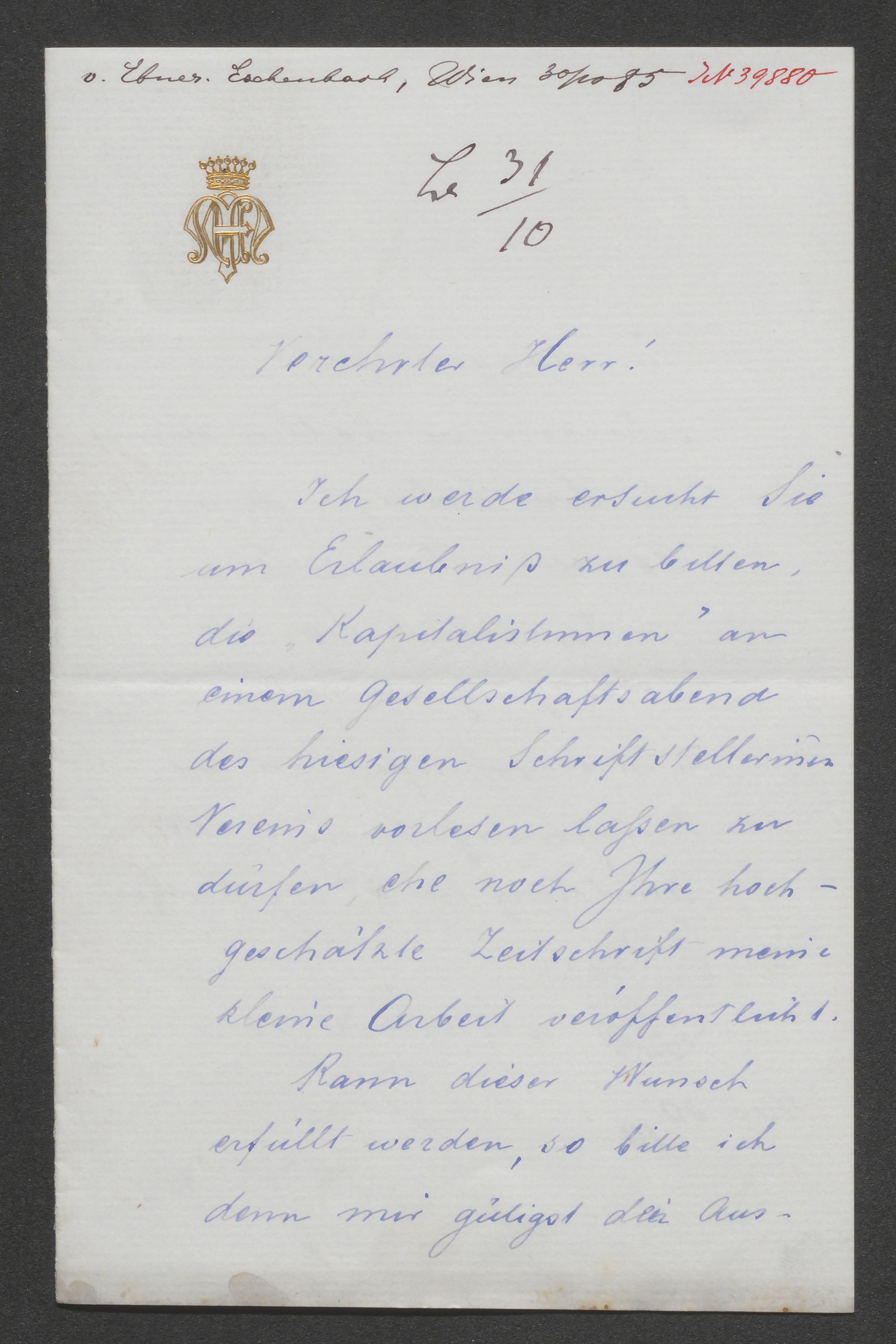 Brief an Ernst Schubert
