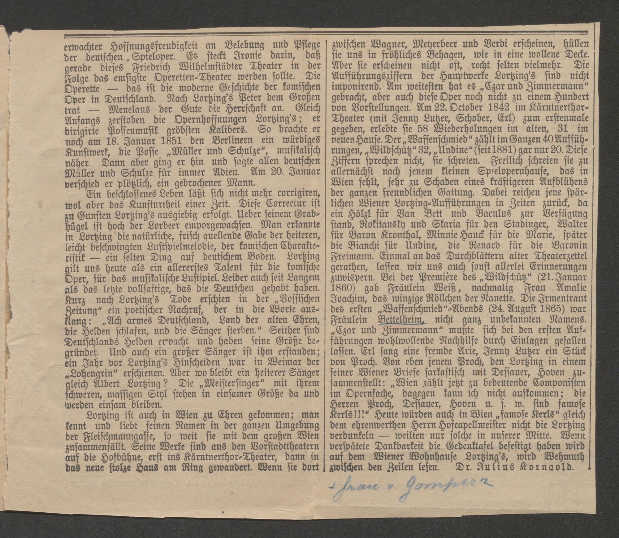 Brief an Natalie von Milde