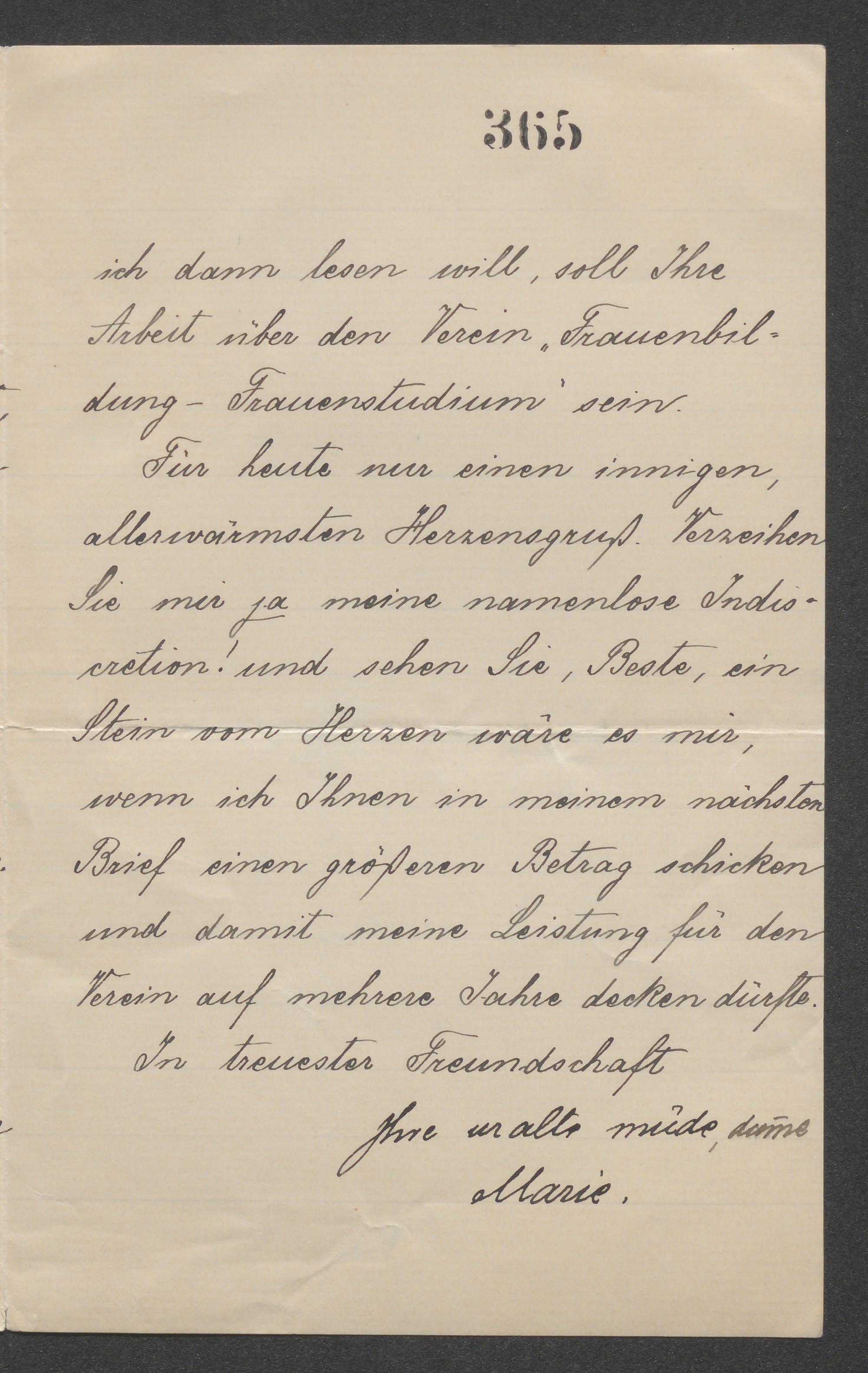Brief an Natalie von Milde