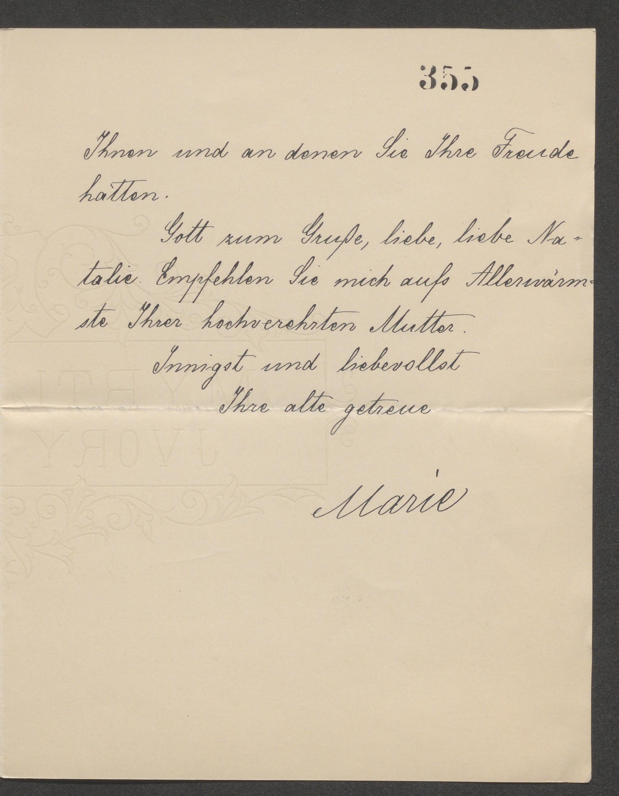 Brief an Natalie von Milde