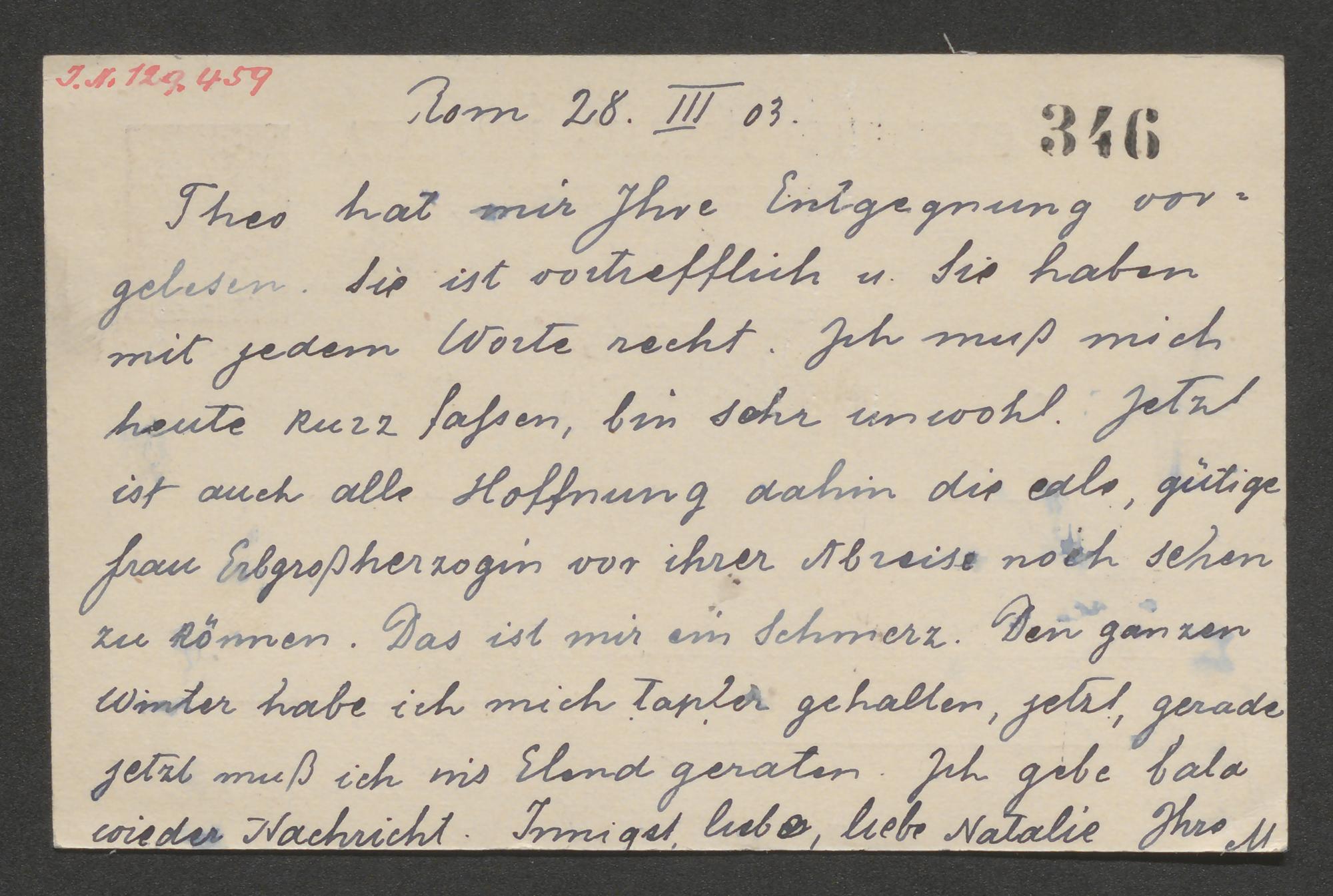 Korrespondenzkarte an Natalie von Milde