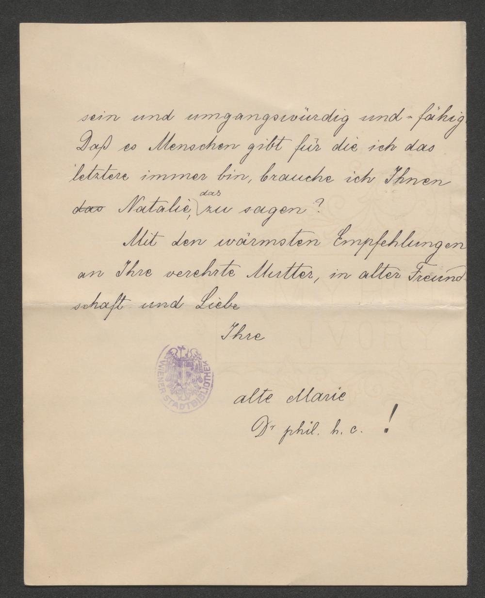 Brief an Natalie von Milde