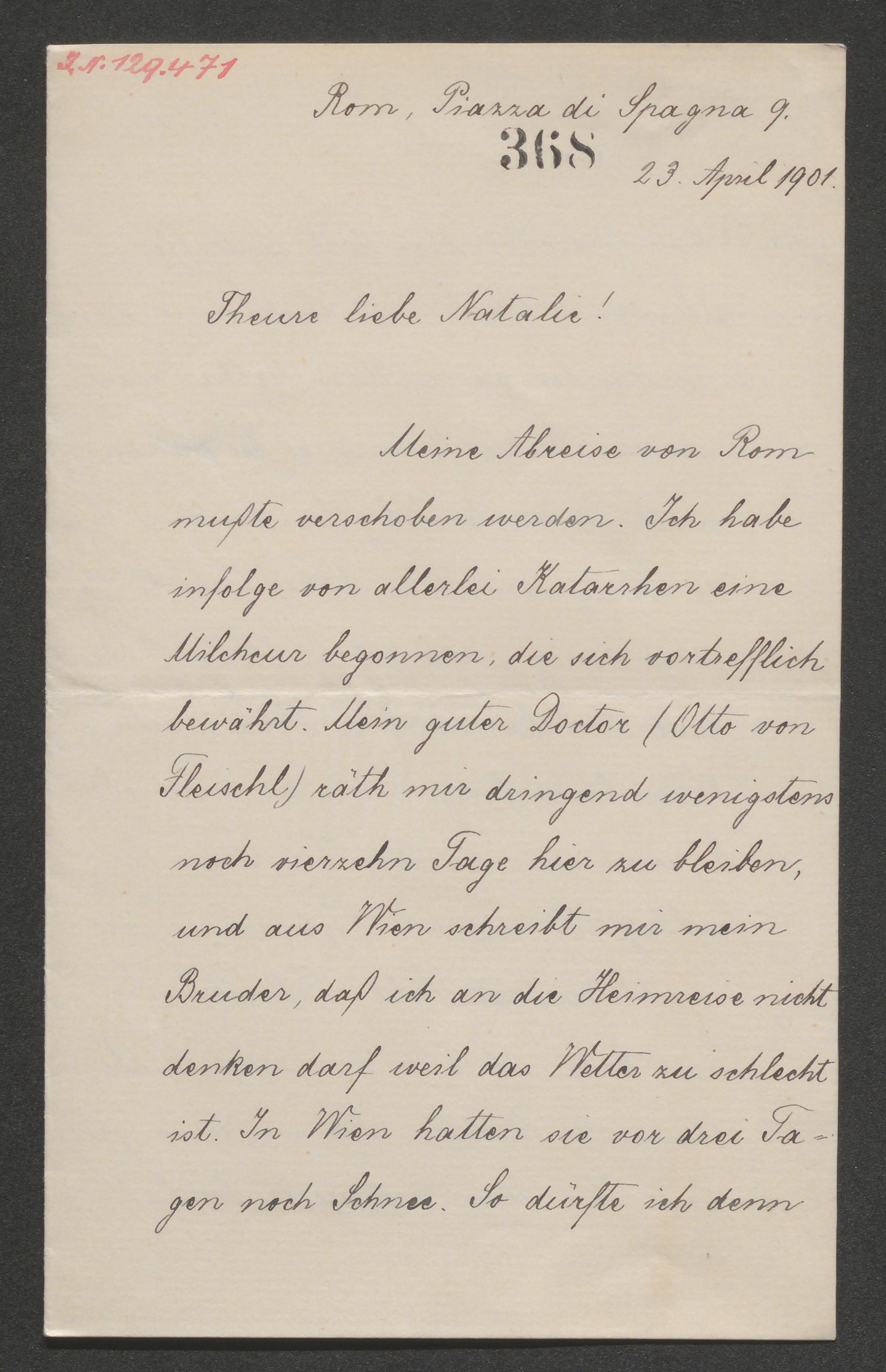 Brief an Natalie von Milde