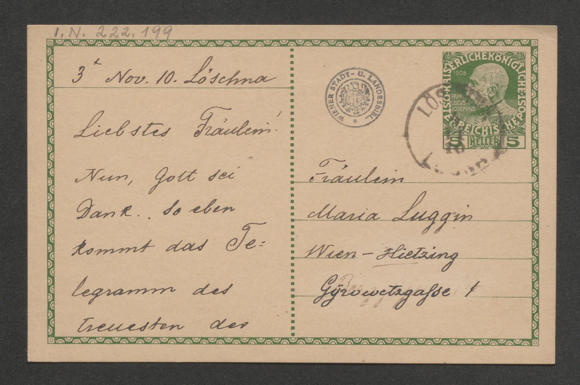 Korrespondenzkarte an Maria Luggin