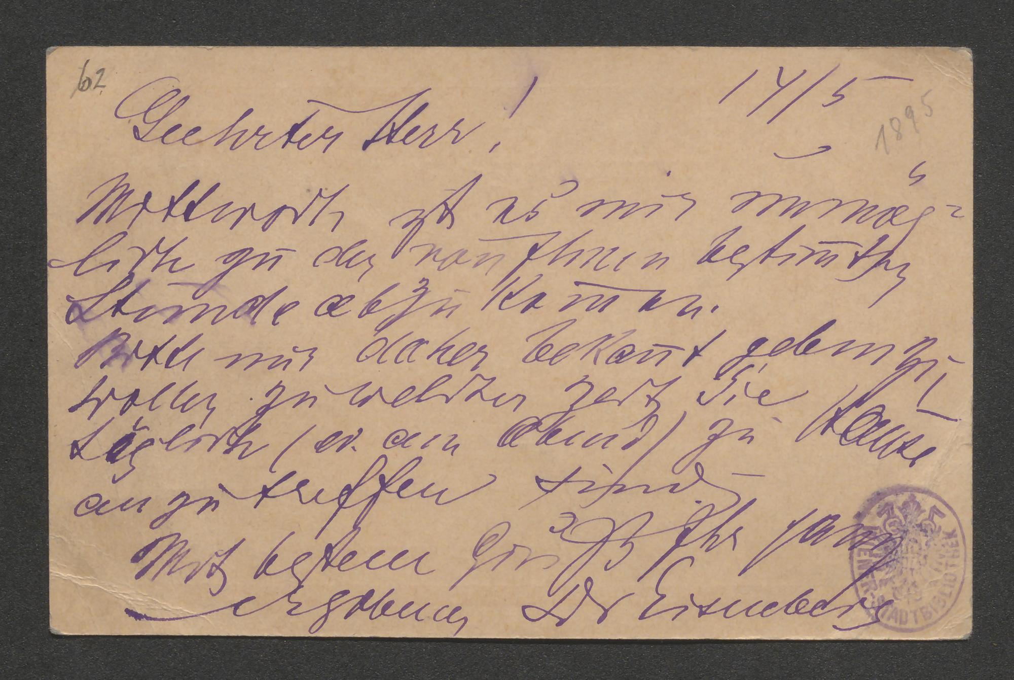 Korrespondenzkarte an Eduard Knoll