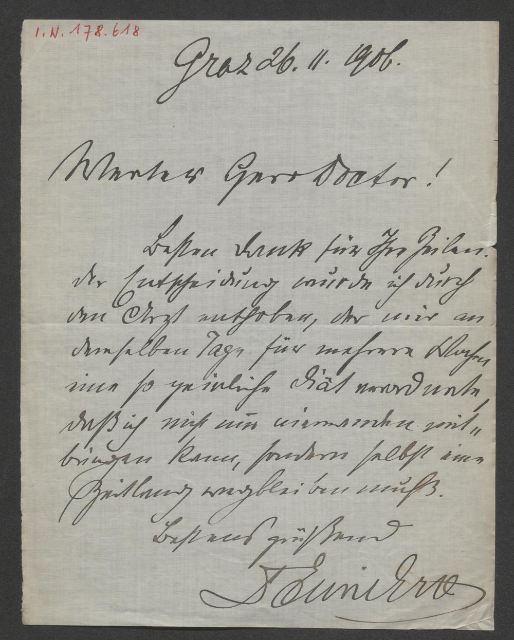 Brief an Wilhelm Kienzl