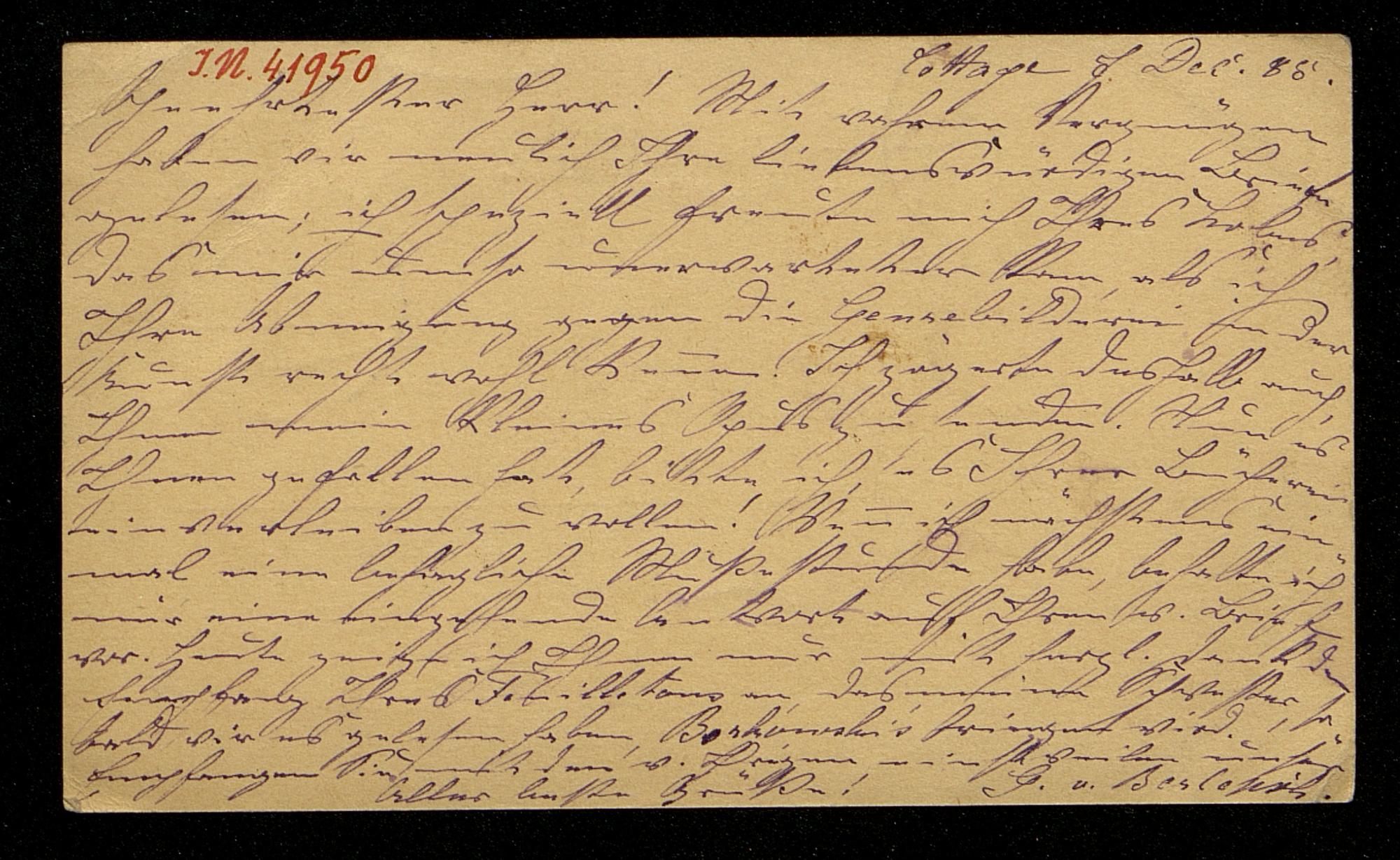 Korrespondenzkarte an Karl Debrois van Bruyck