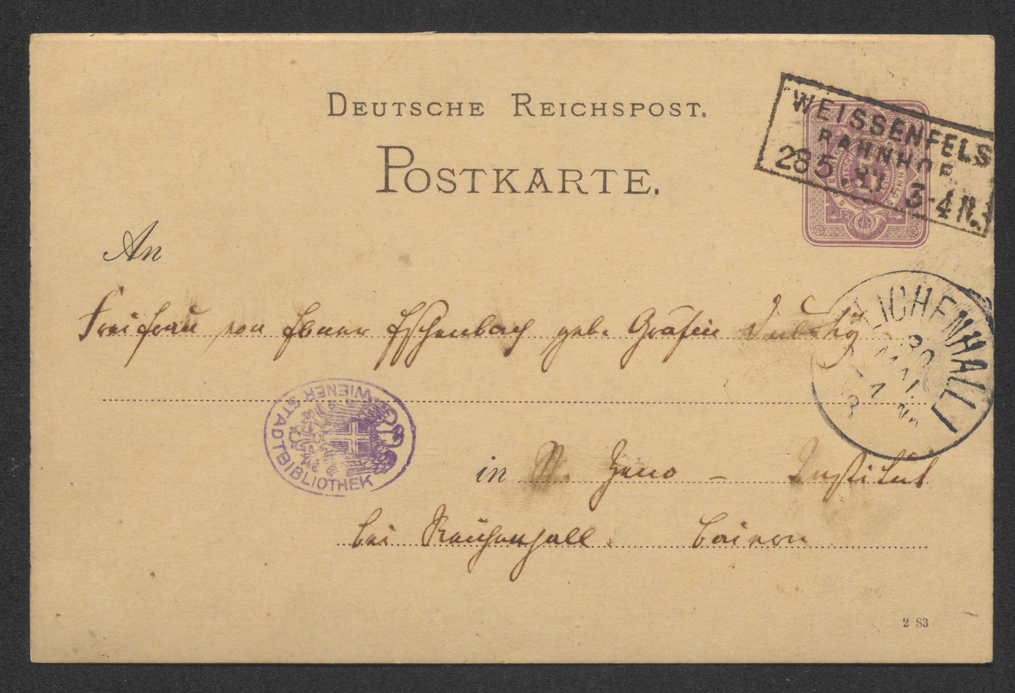 Korrespondenzkarte an Marie von Ebner-Eschenbach