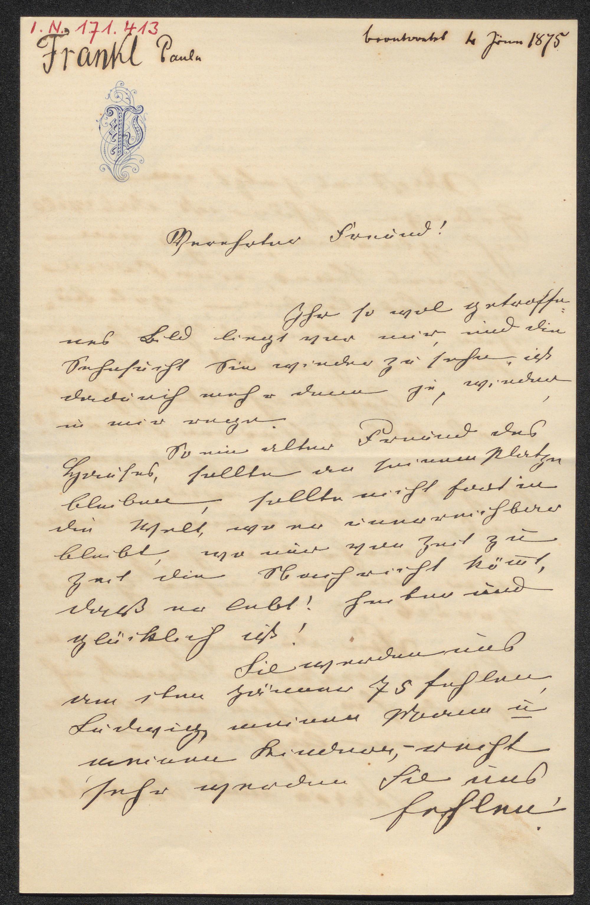 Brief an Constantin von Wurzbach