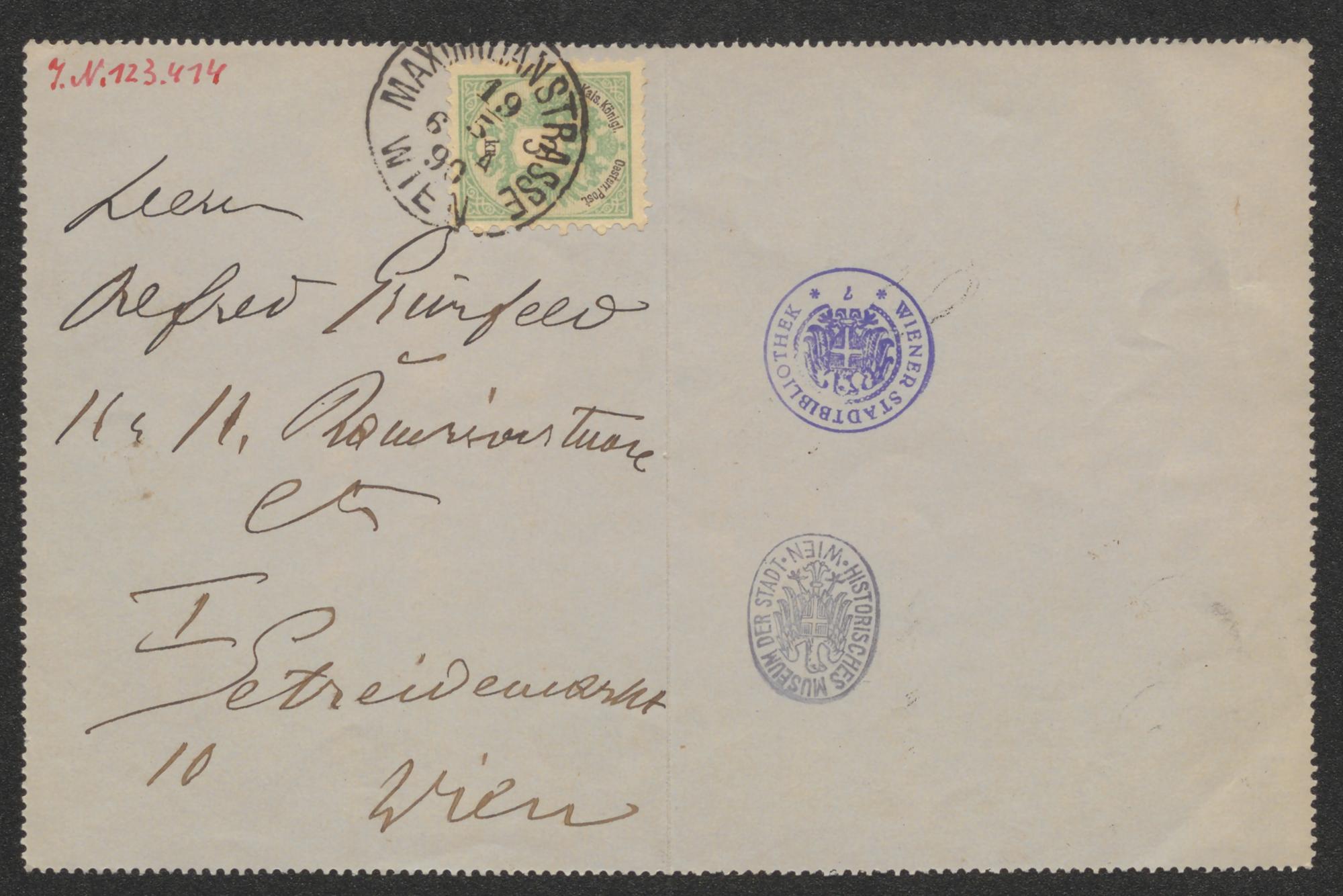 Kartenbrief an Alfred Grünfeld