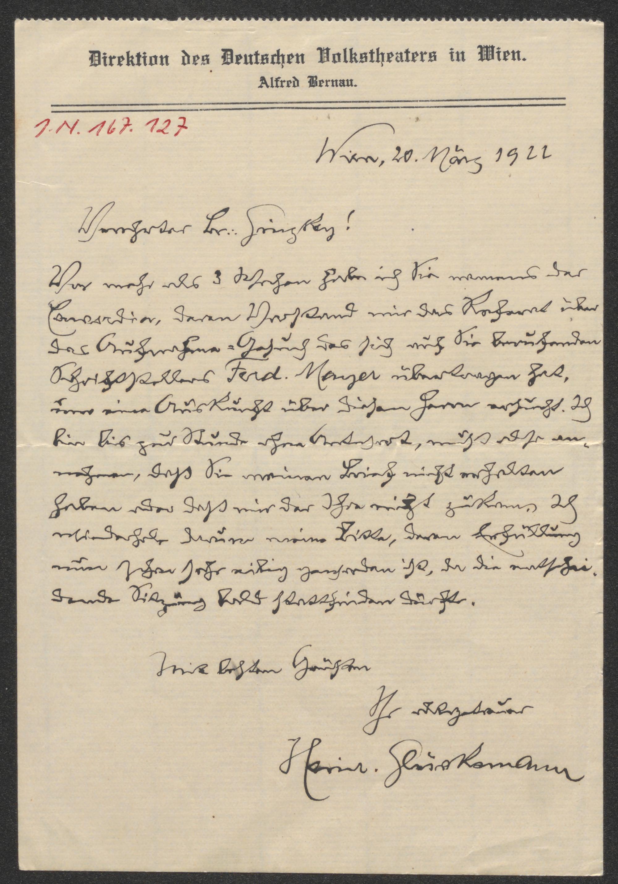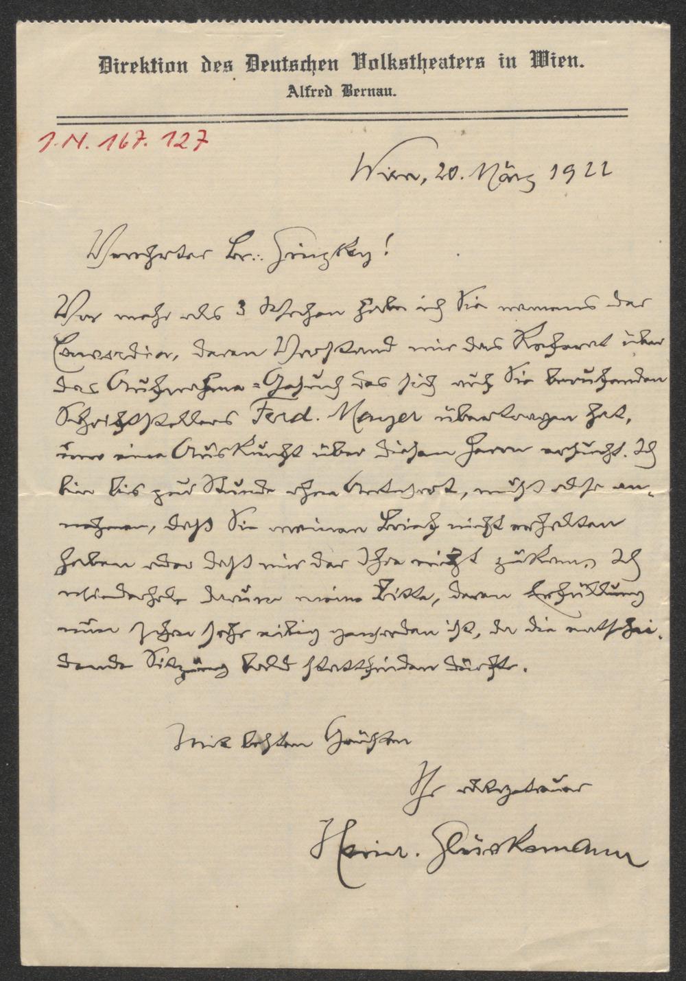 Brief an Franz Karl Ginzkey