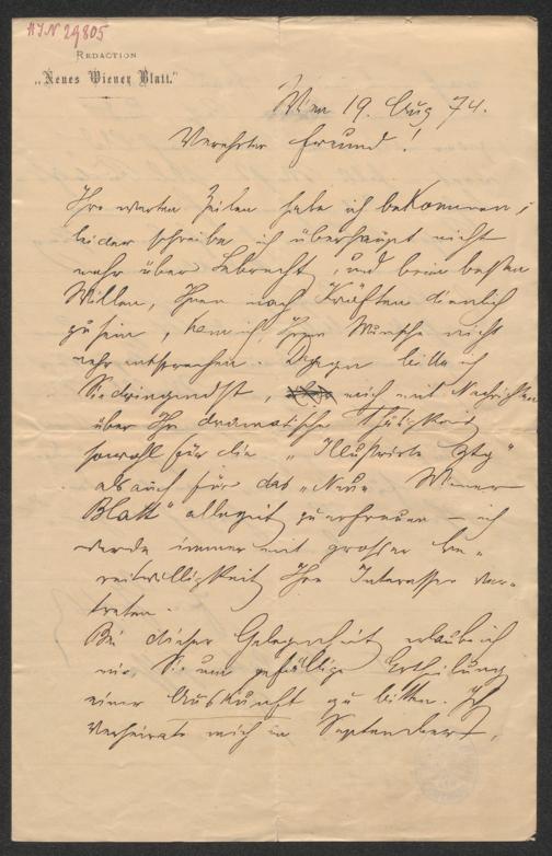 Brief an Karl Gründorf