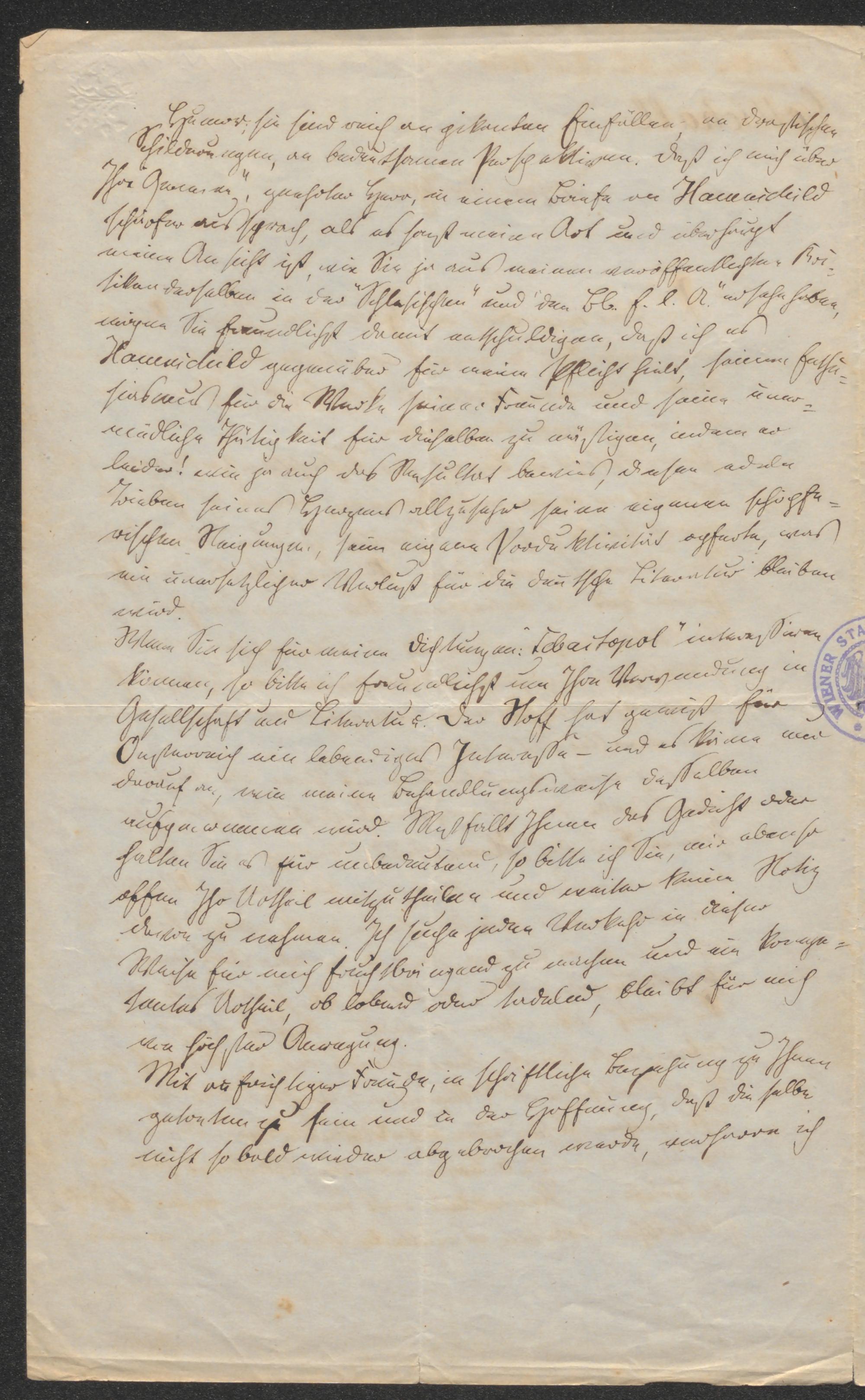 Brief an Constantin von Wurzbach