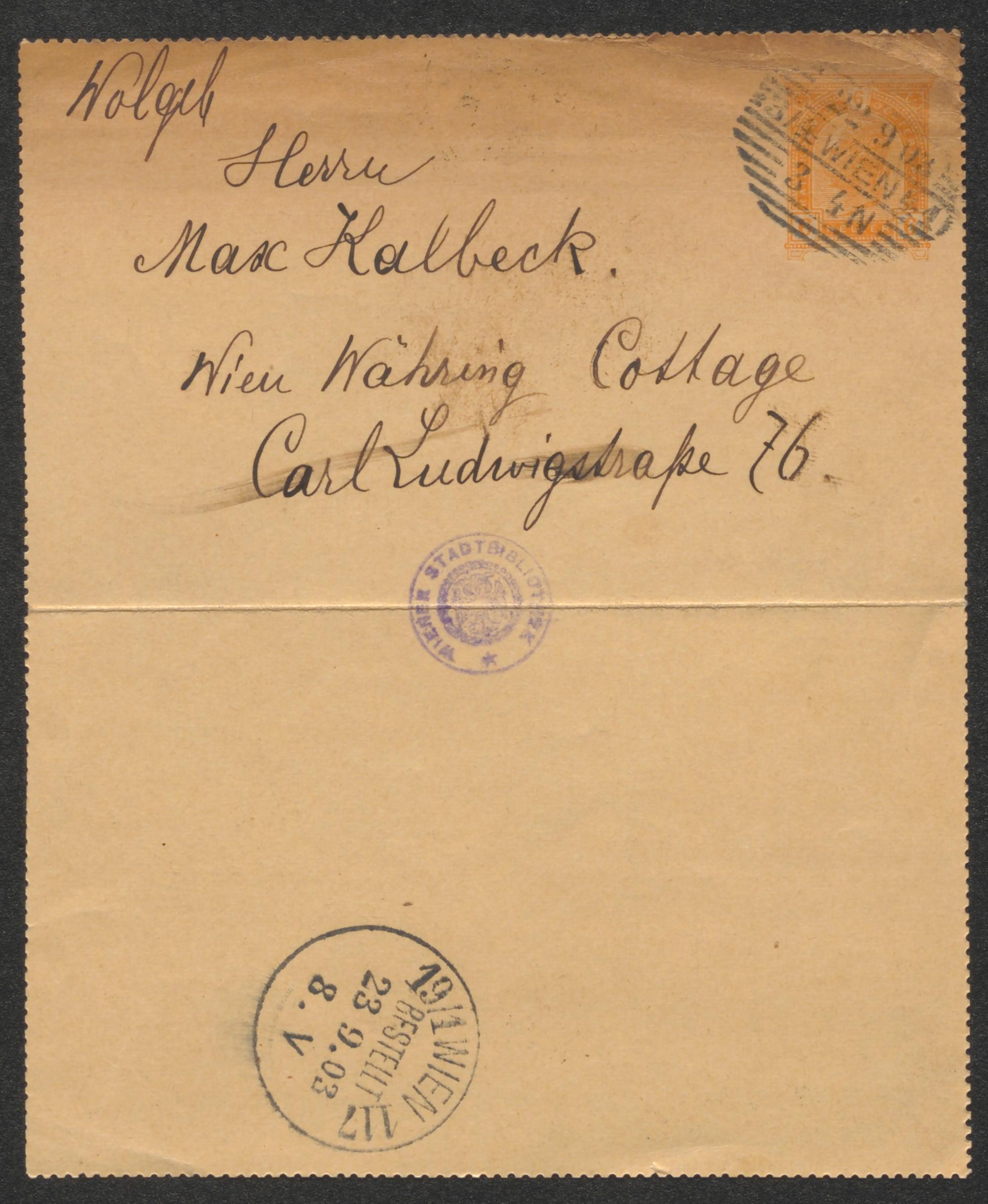 Kartenbrief an Max Kalbeck