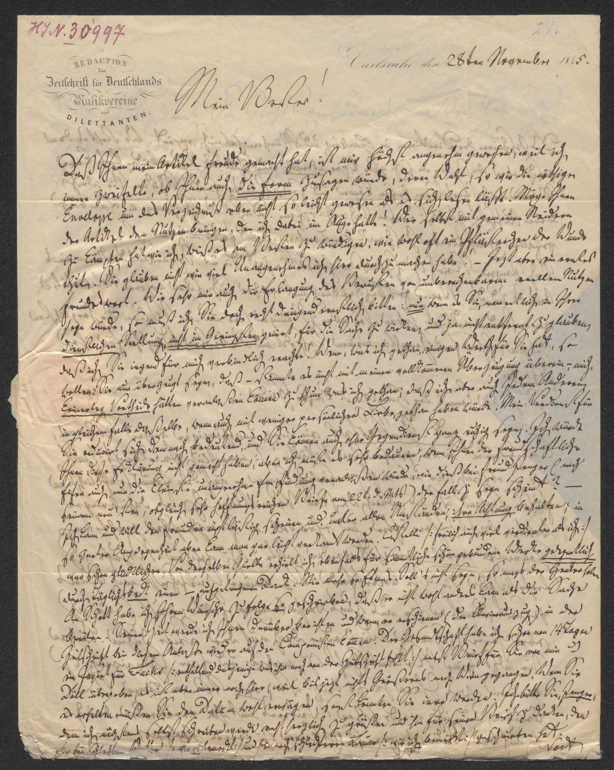 Brief an Johann Vesque von Püttlingen