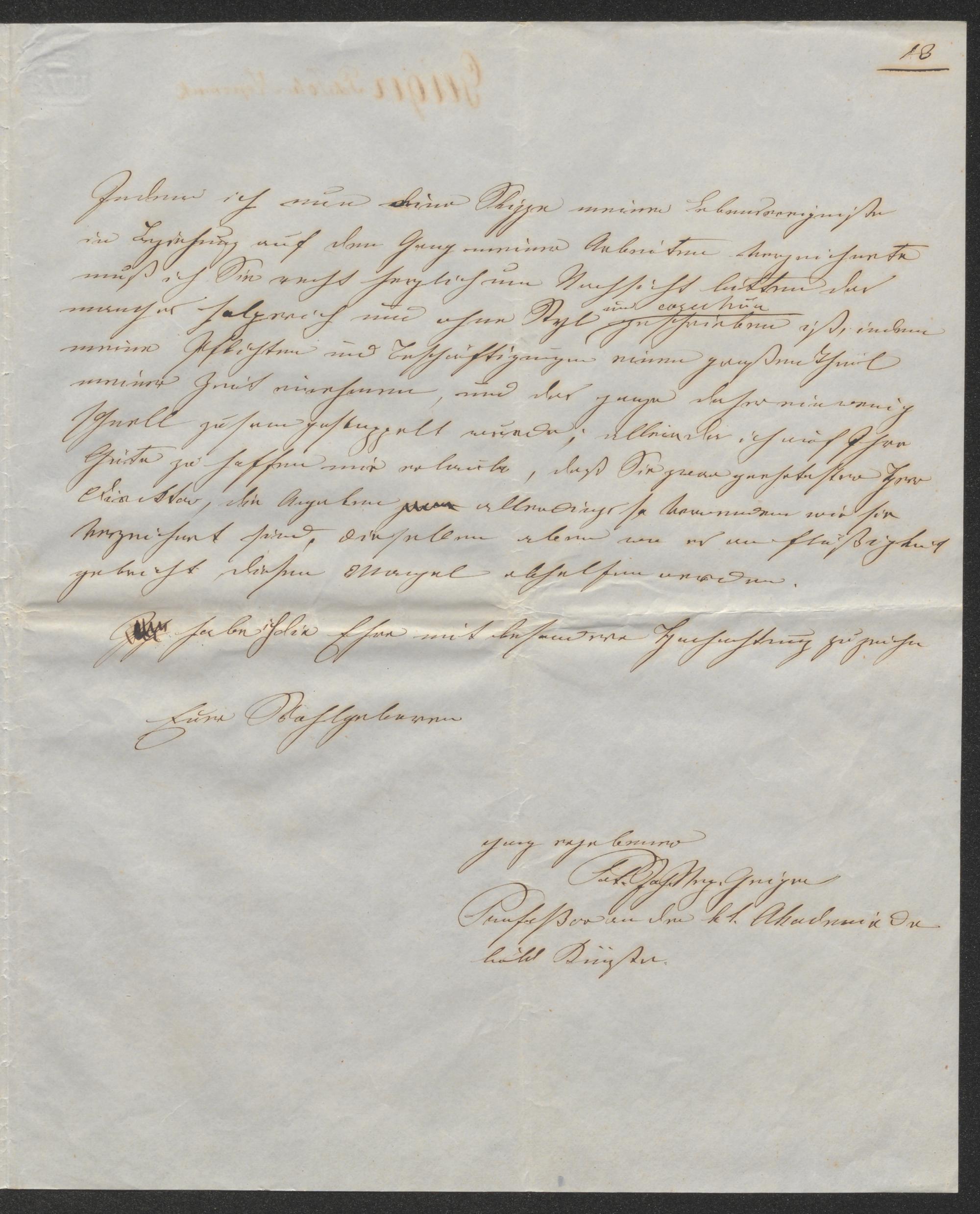 Brief an Constantin von Wurzbach