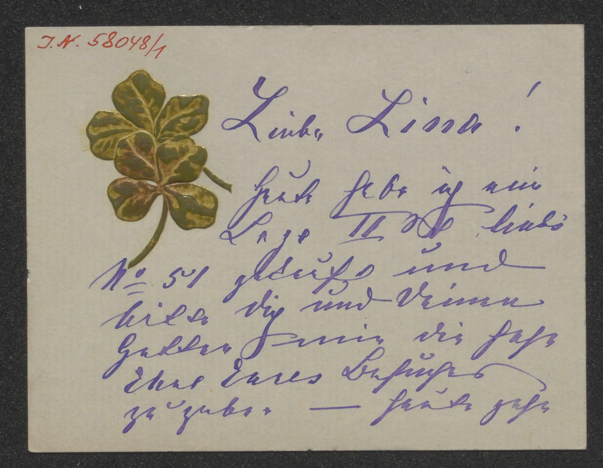 Billett und Visitenkarten an Fritz und Karoline Purgleitner