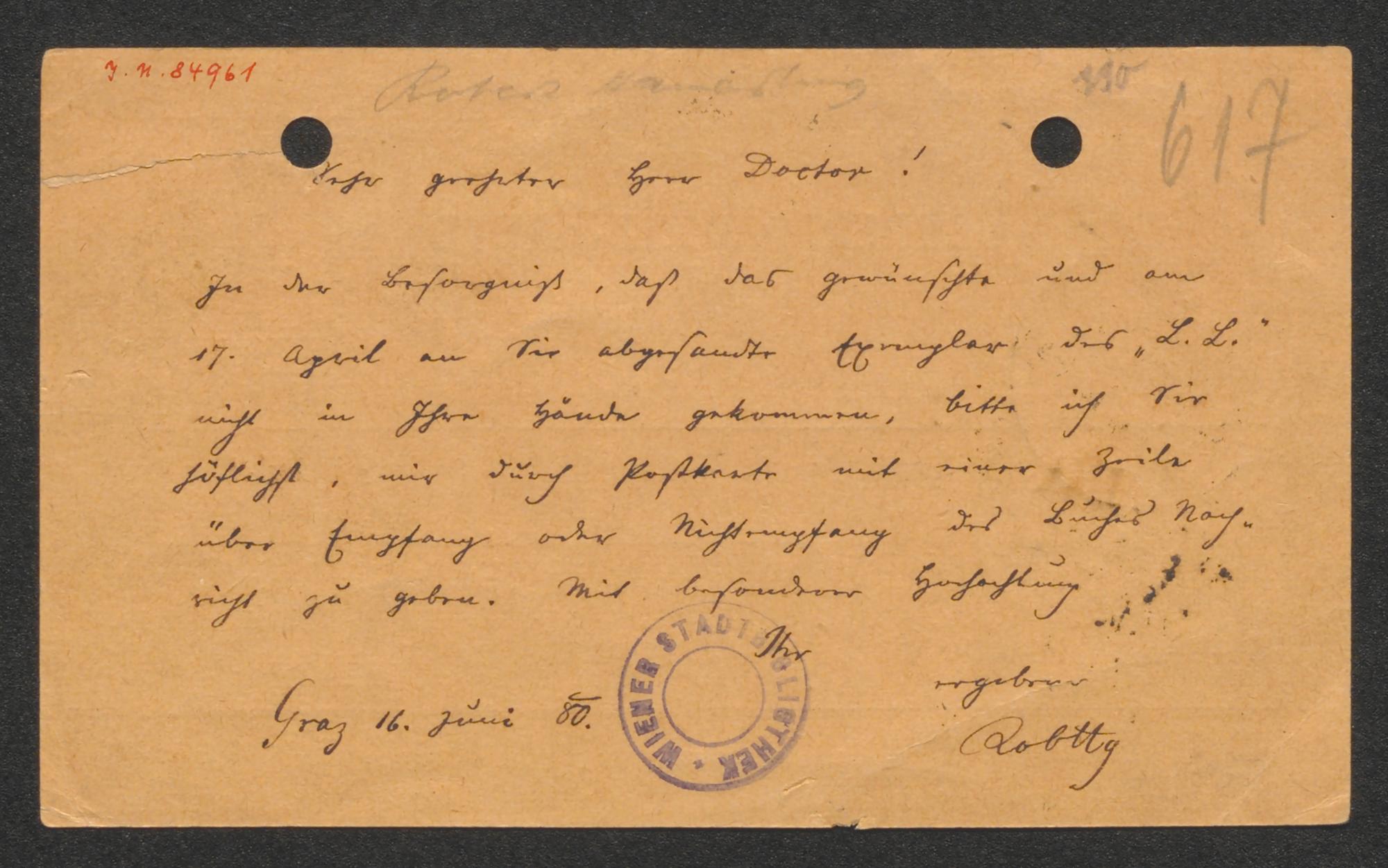 Postkarte an Eugen Zabel