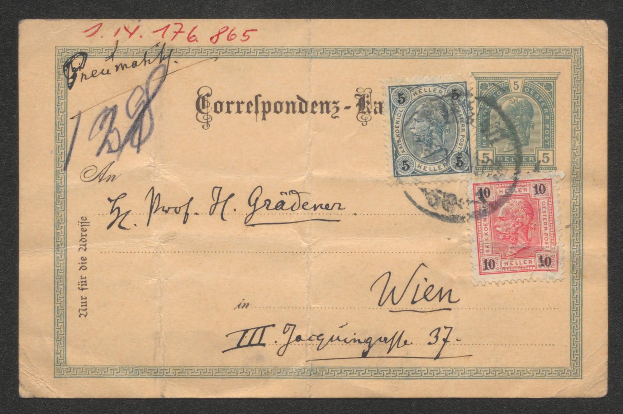 Korrespondenzkarte an Hermann Graedener