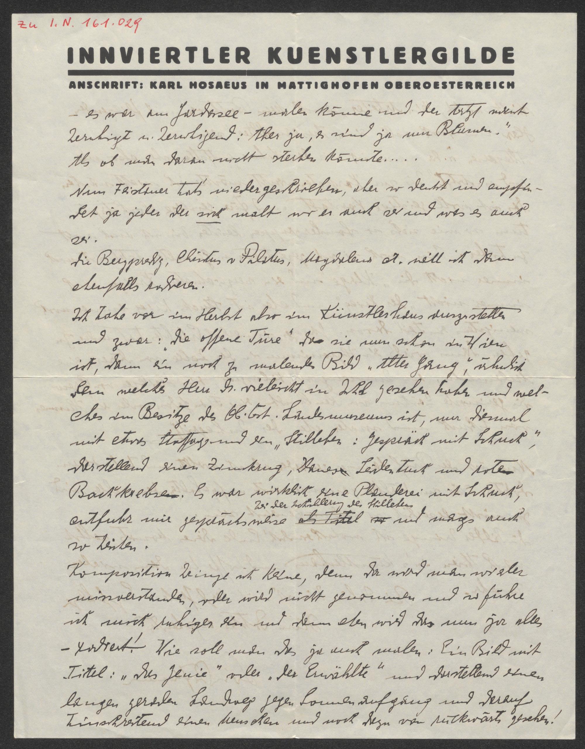 Brief an Hans Ankwicz-Kleehoven