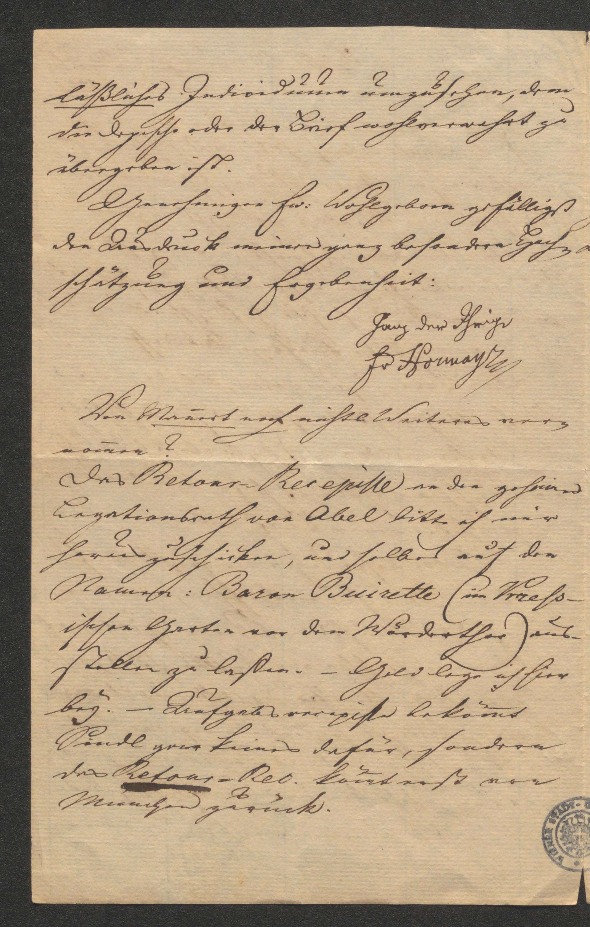 Brief an Moritz Maximilian Mayer