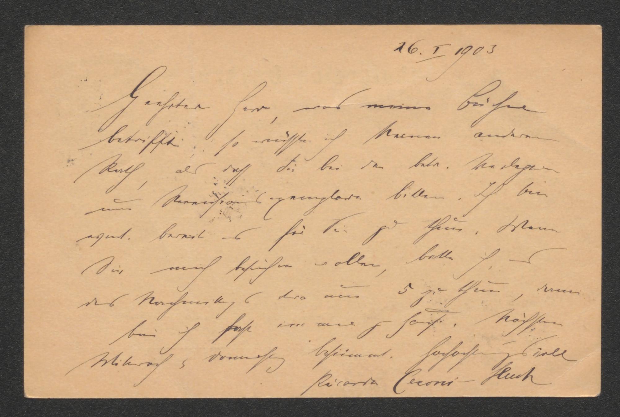 Postkarte an Arthur Roessler