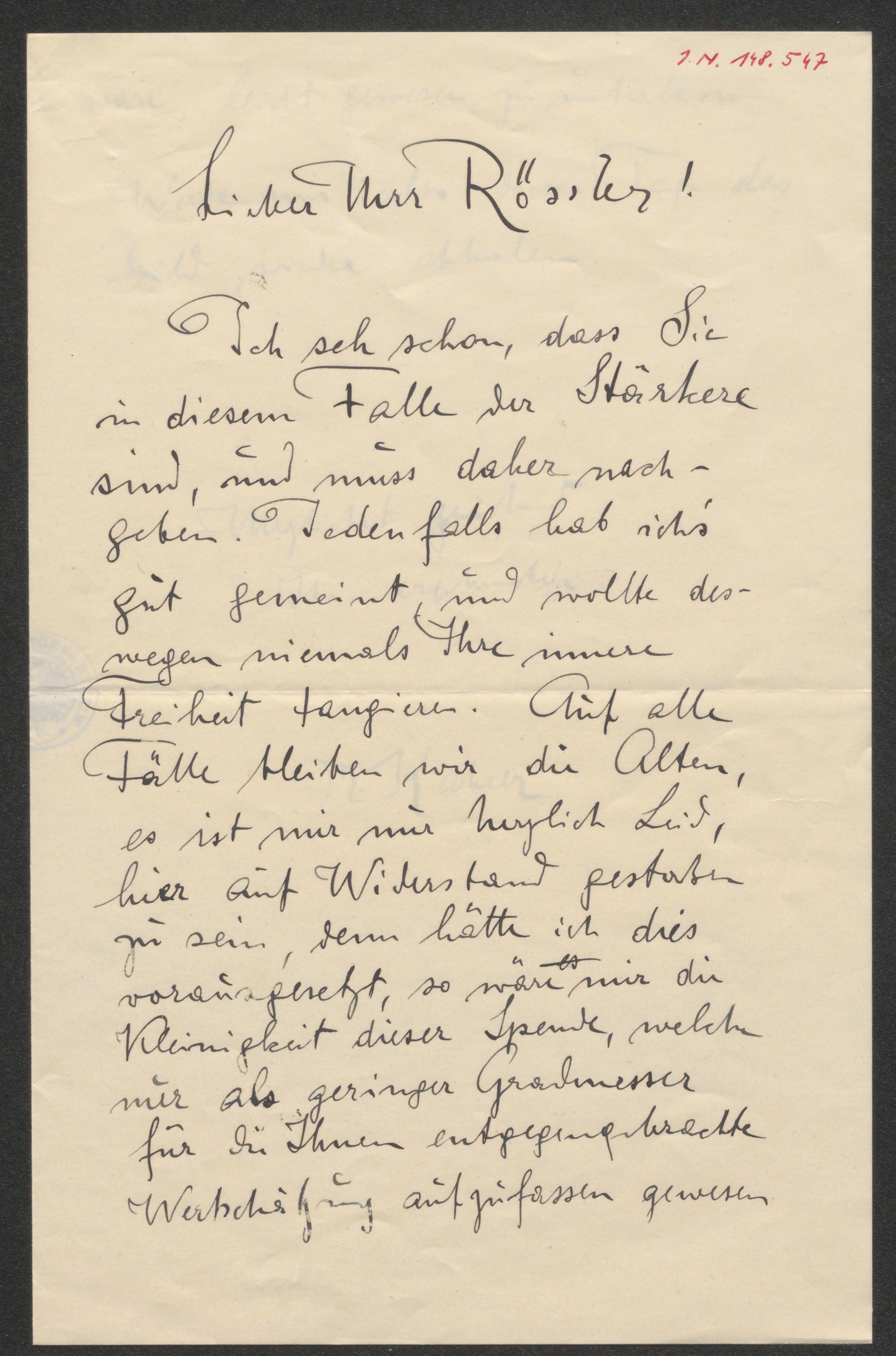 Brief an Arthur Roessler