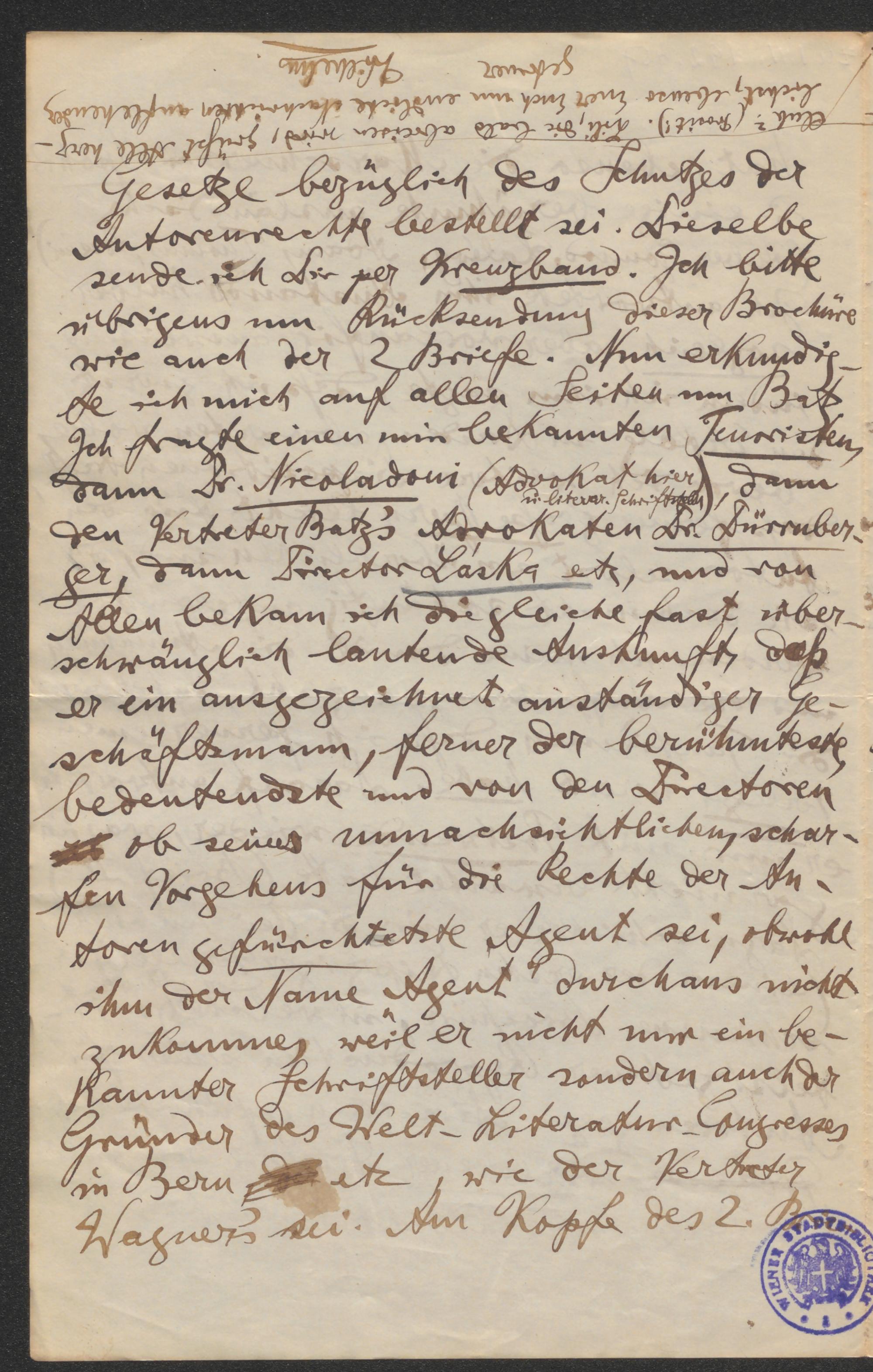 Brief an Wilhelm und Nina Kienzl