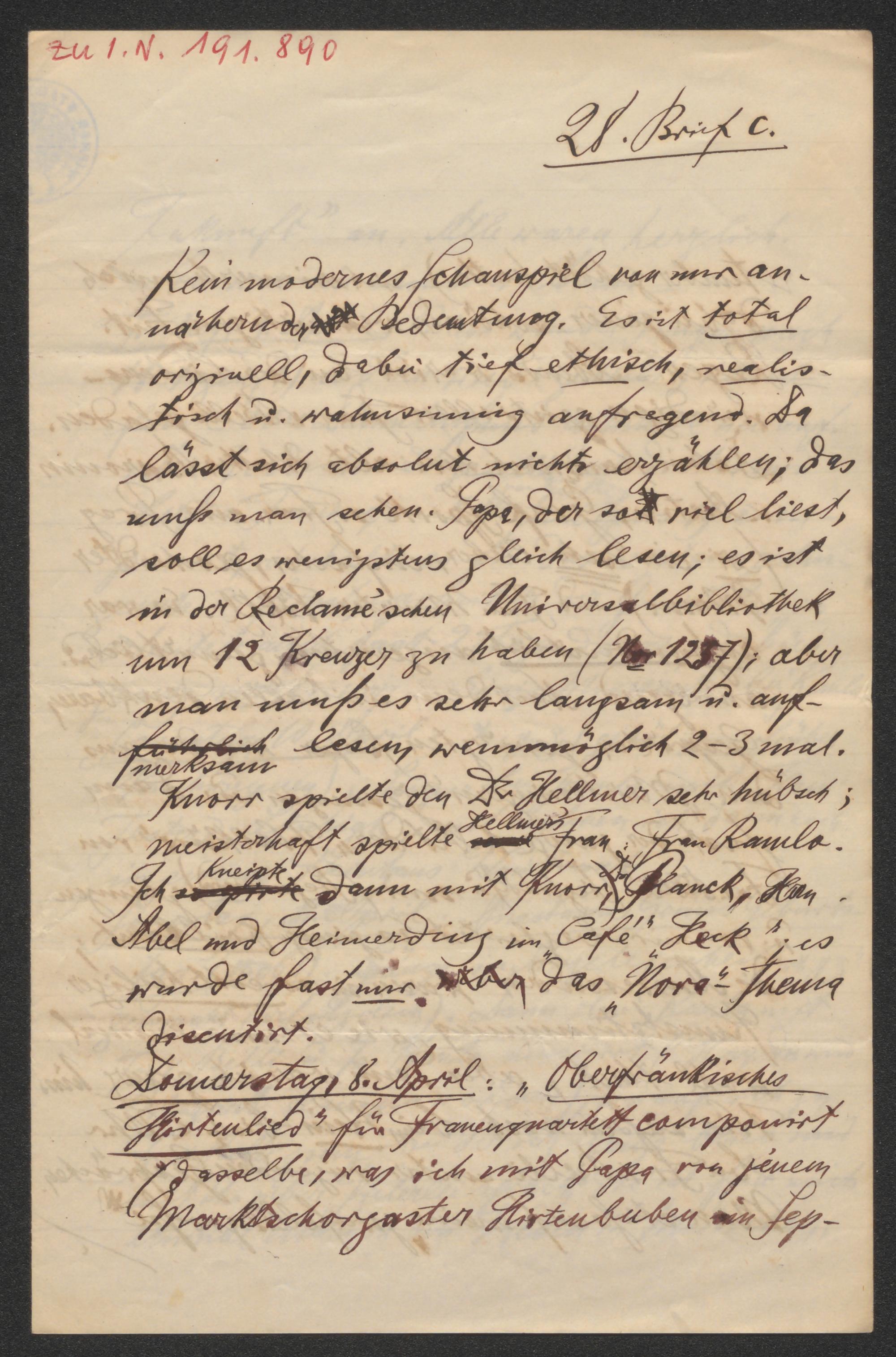 Brief an Wilhelm und Nina Kienzl