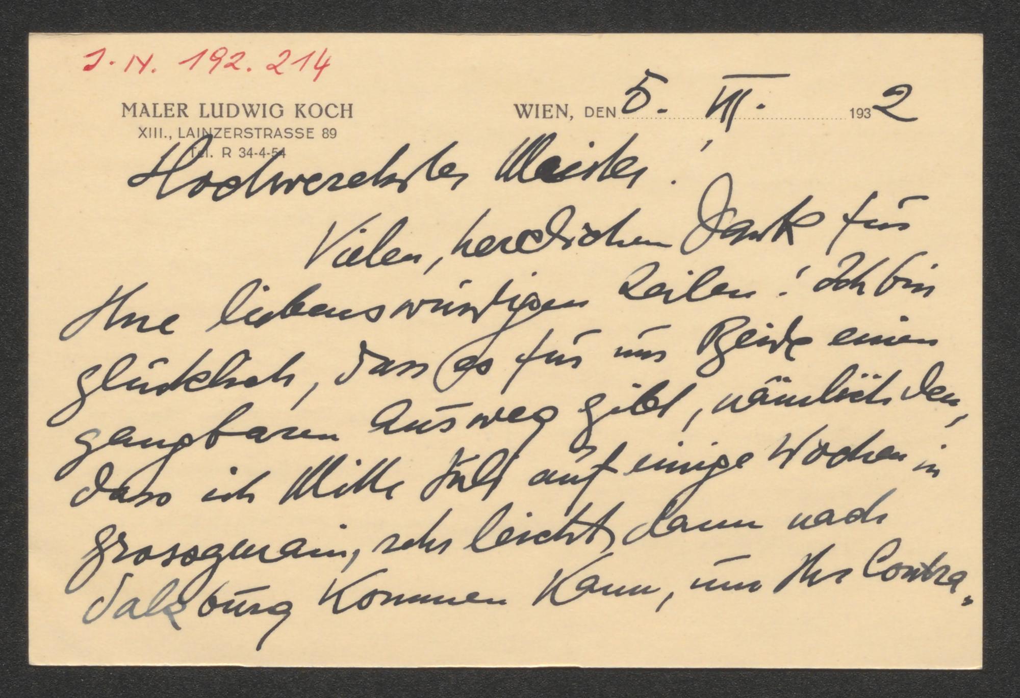 Briefkarte an Franz Karl Ginzkey