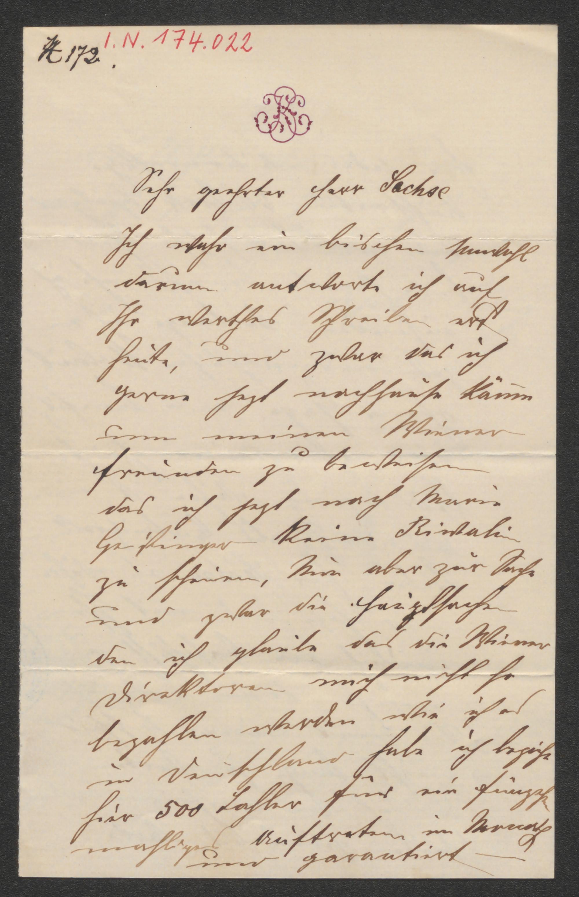Brief an Carl Albert Sachse