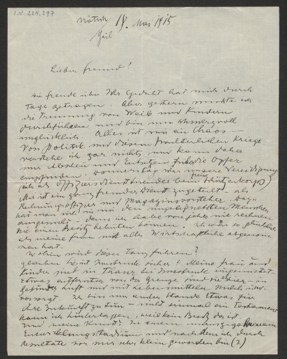 Brief an Richard von Schaukal