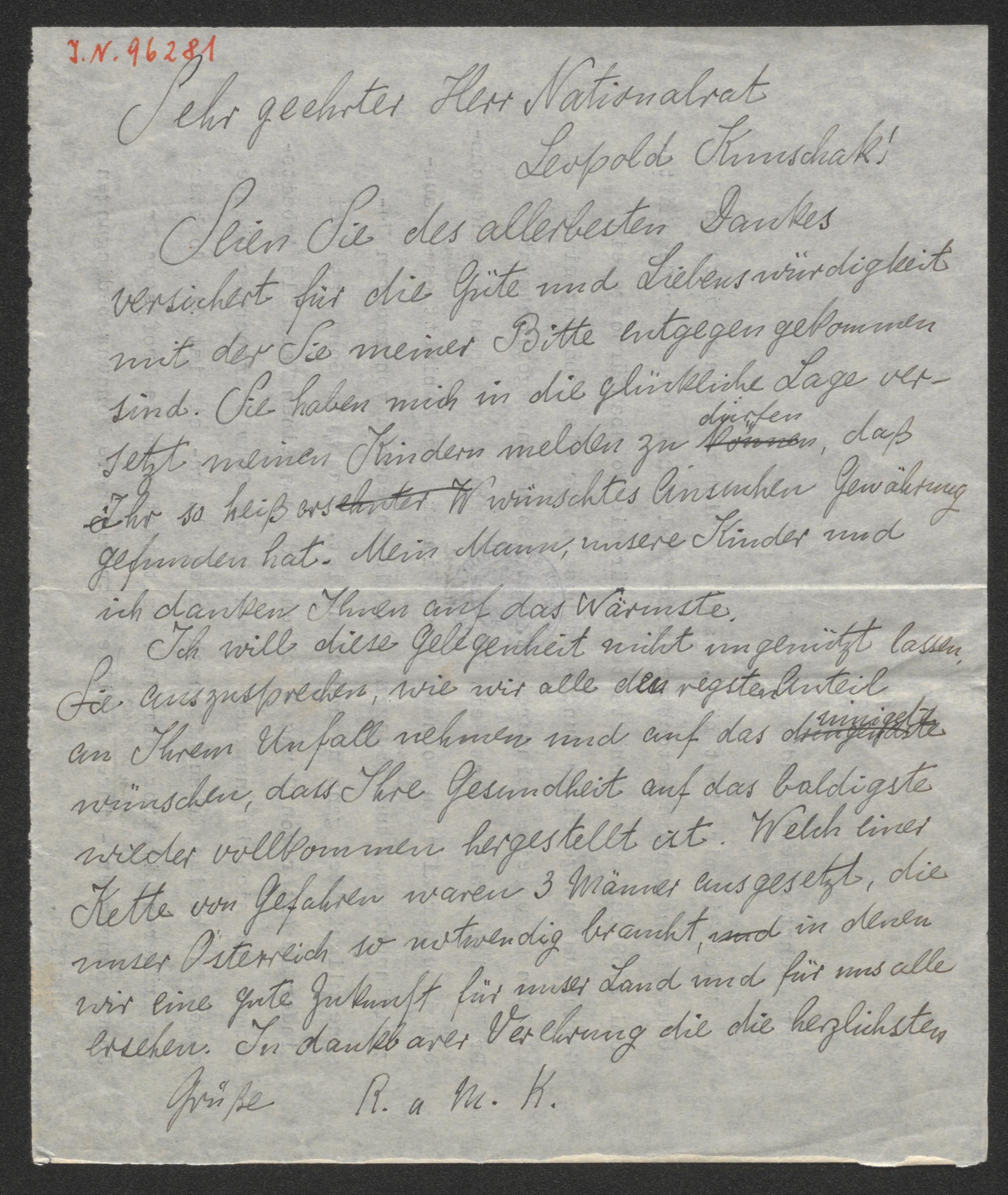 Brief an Leopold Kunschak