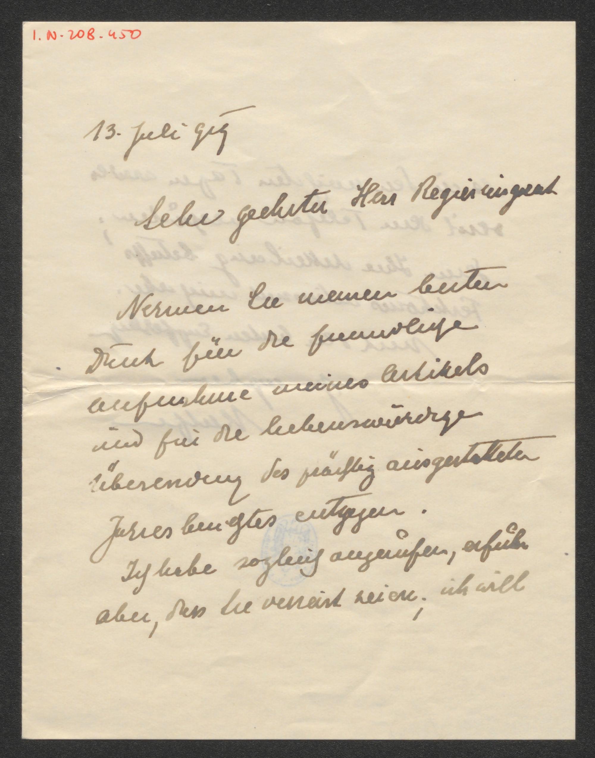 Brief an Franz Martin Haberditzl