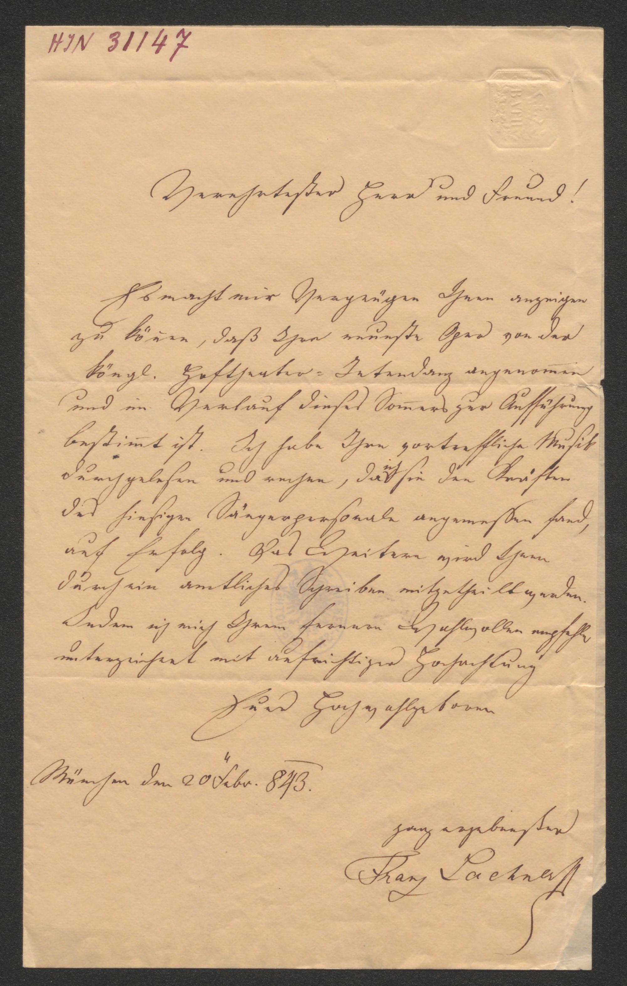 Brief an Johann Vesque von Püttlingen