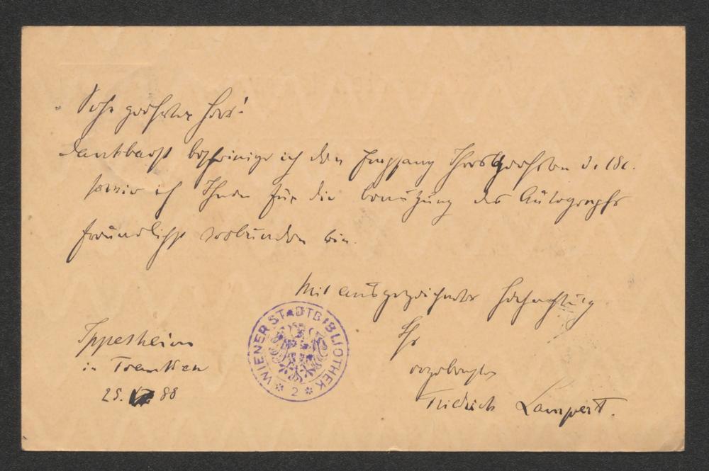 Postkarte an Karl Emil Franzos