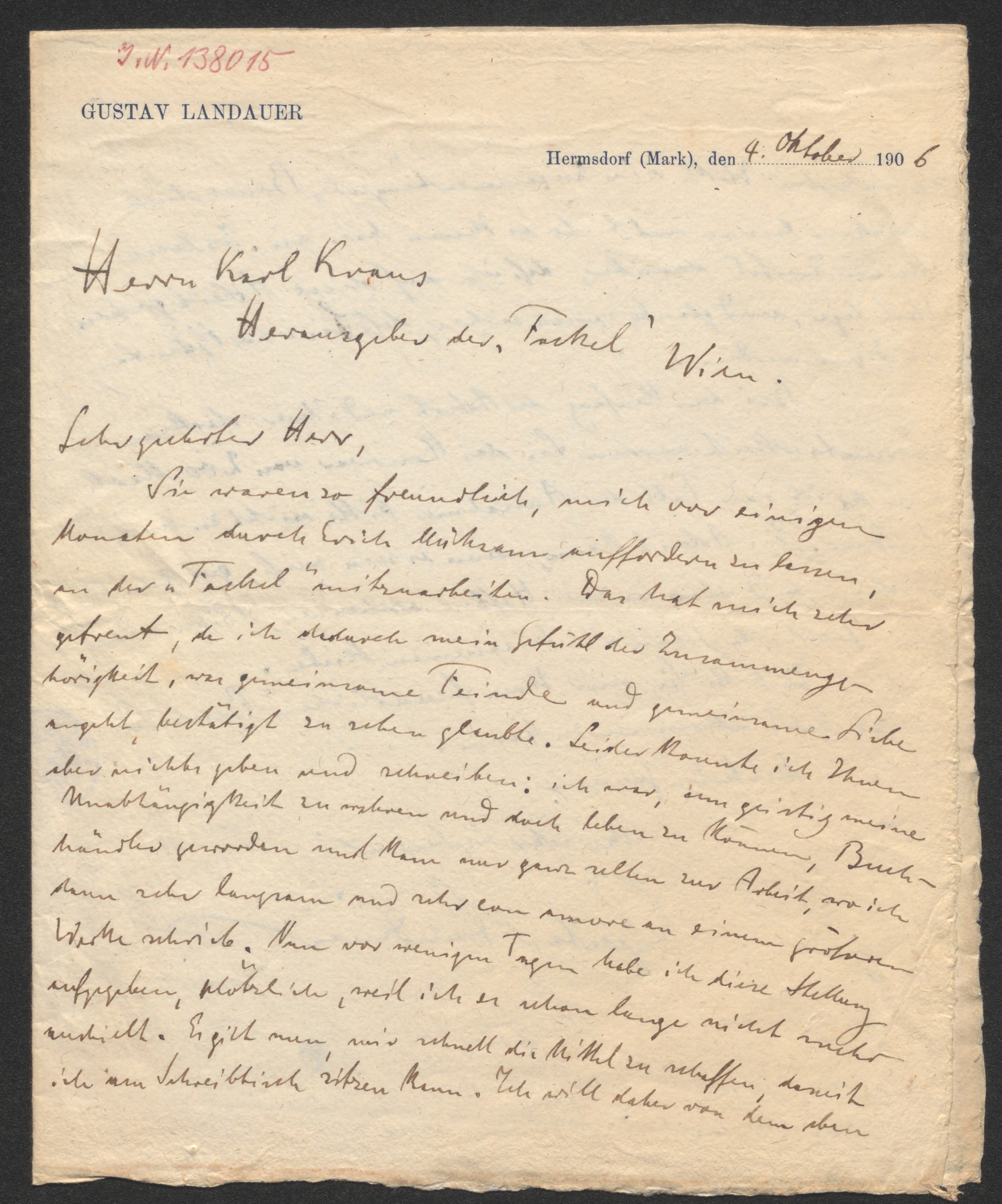 Brief an Karl Kraus