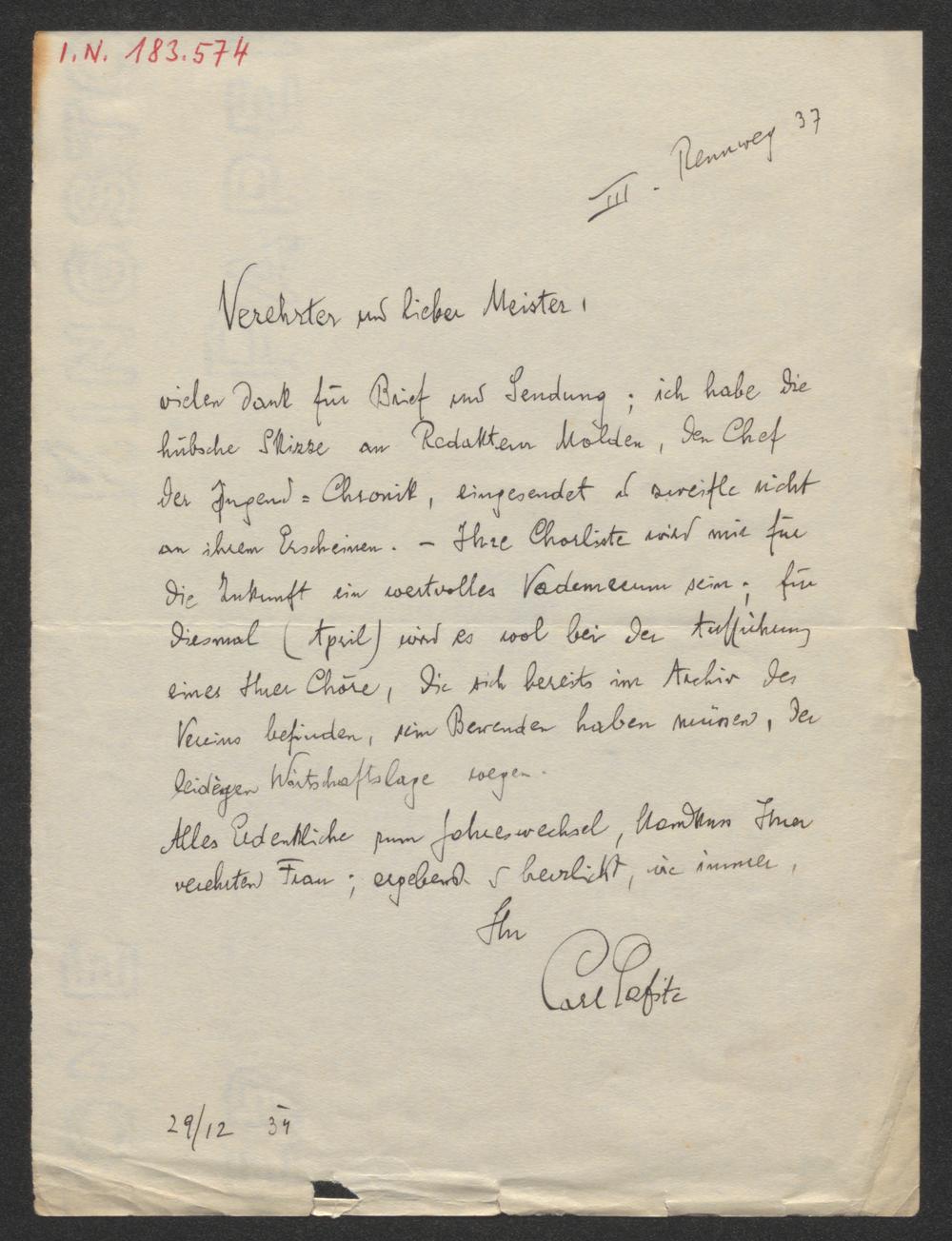 Brief an Wilhelm Kienzl
