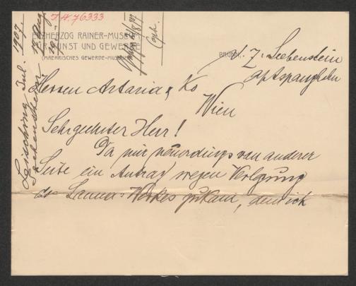Billett an Artaria und Compagnie