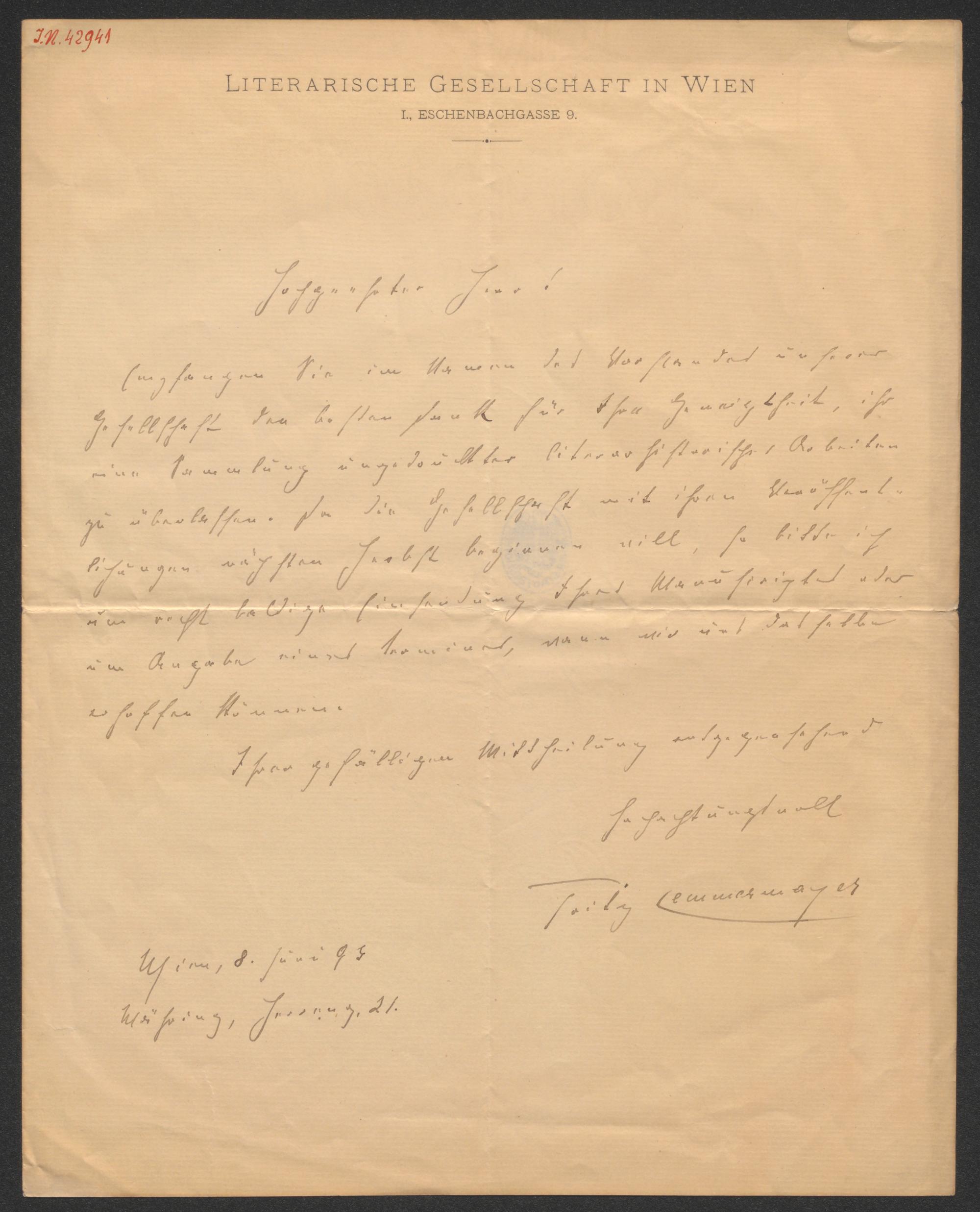 Brief an Karl Emil Franzos