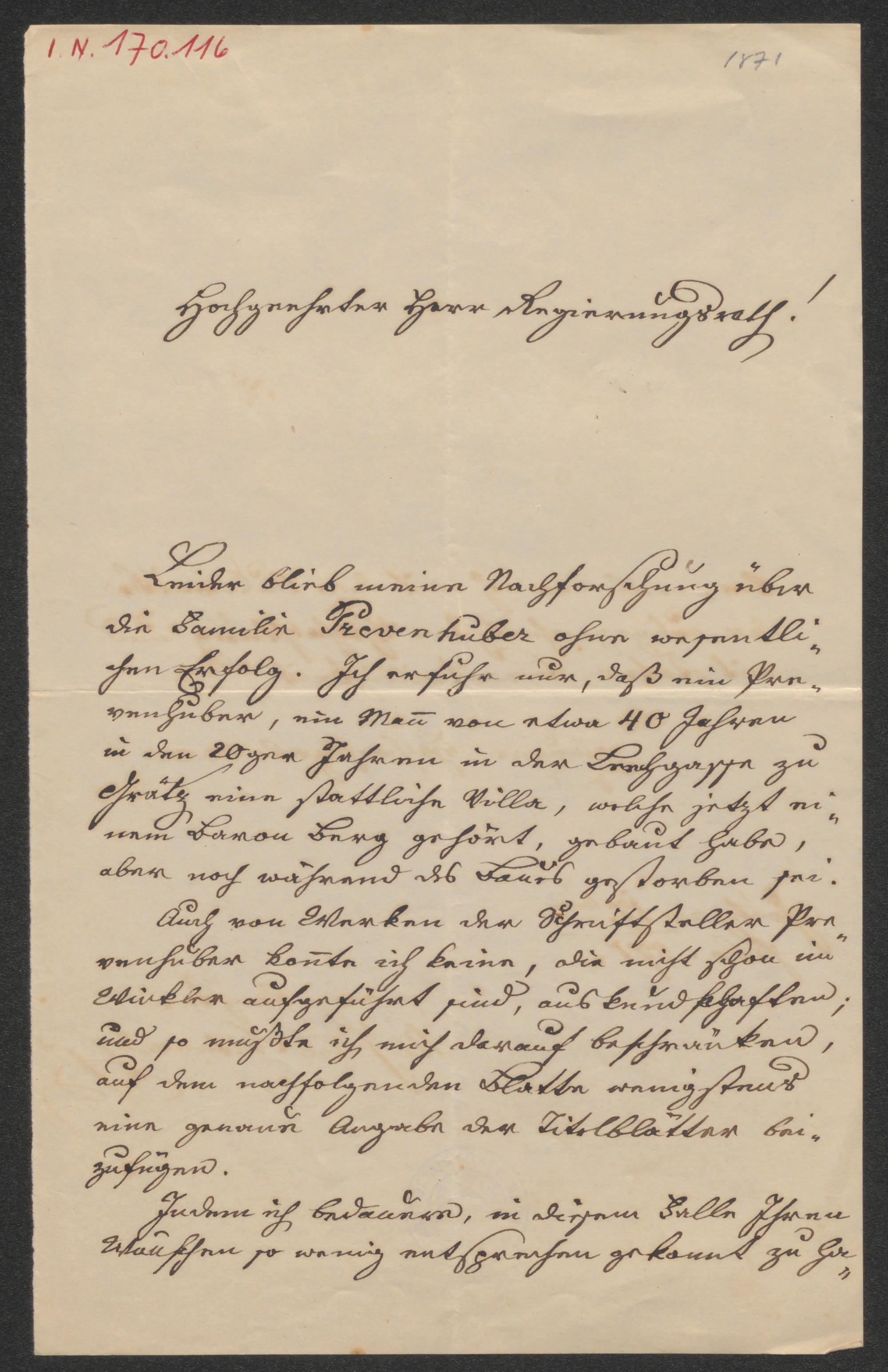 Brief an Constantin von Wurzbach