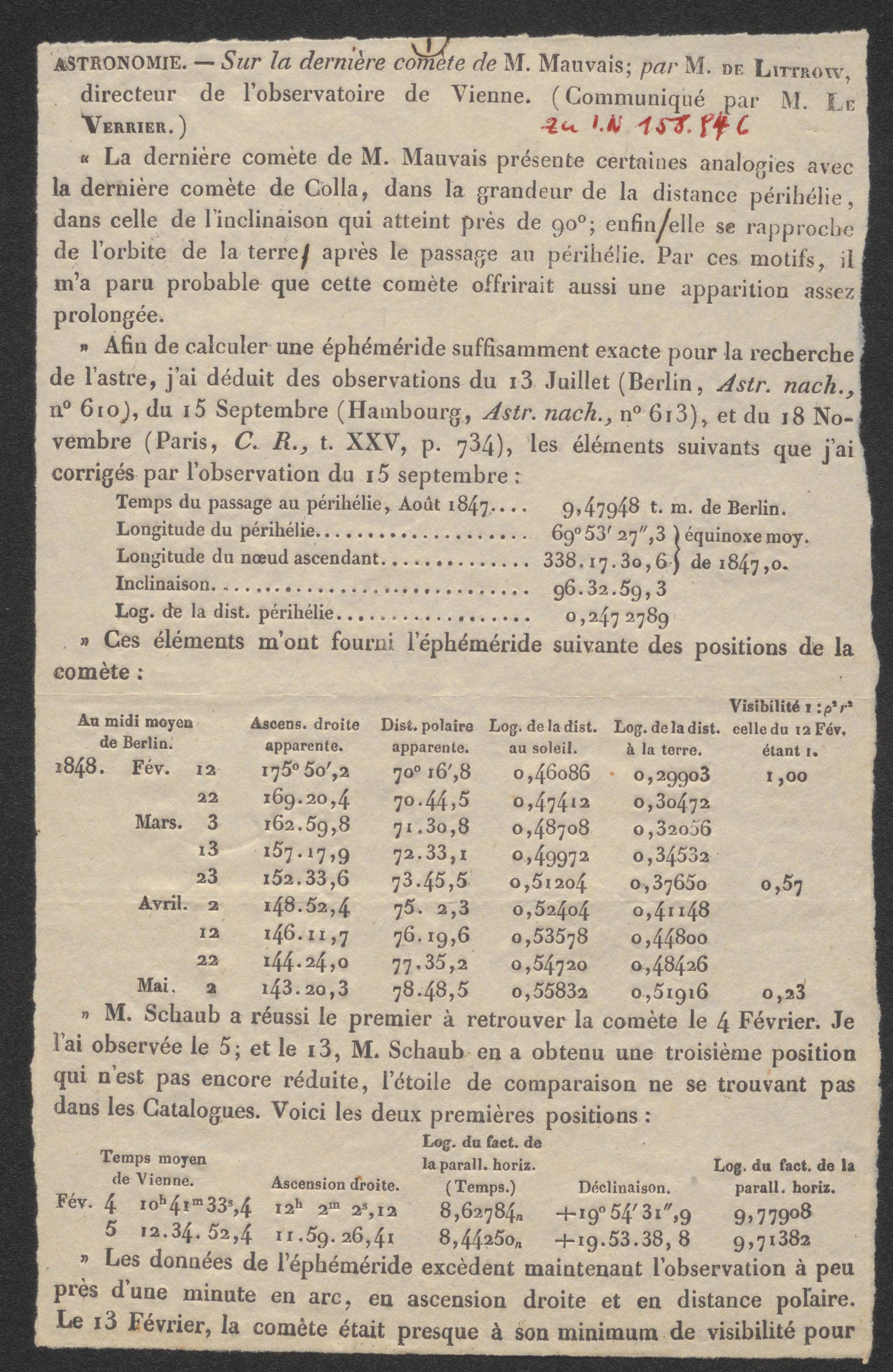 Brief an Carl Ludwig von Littrow