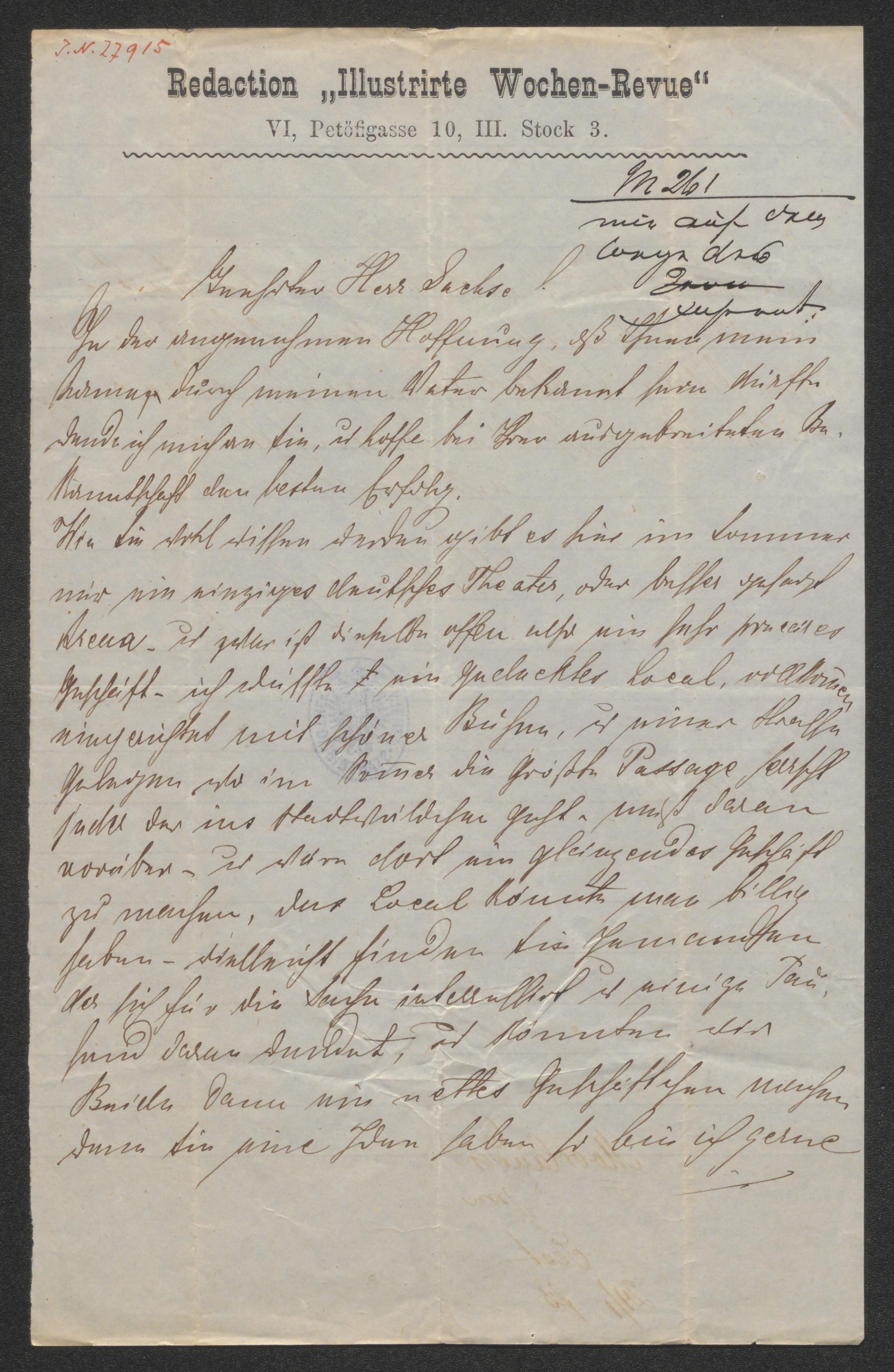 Brief an Carl Albert Sachse