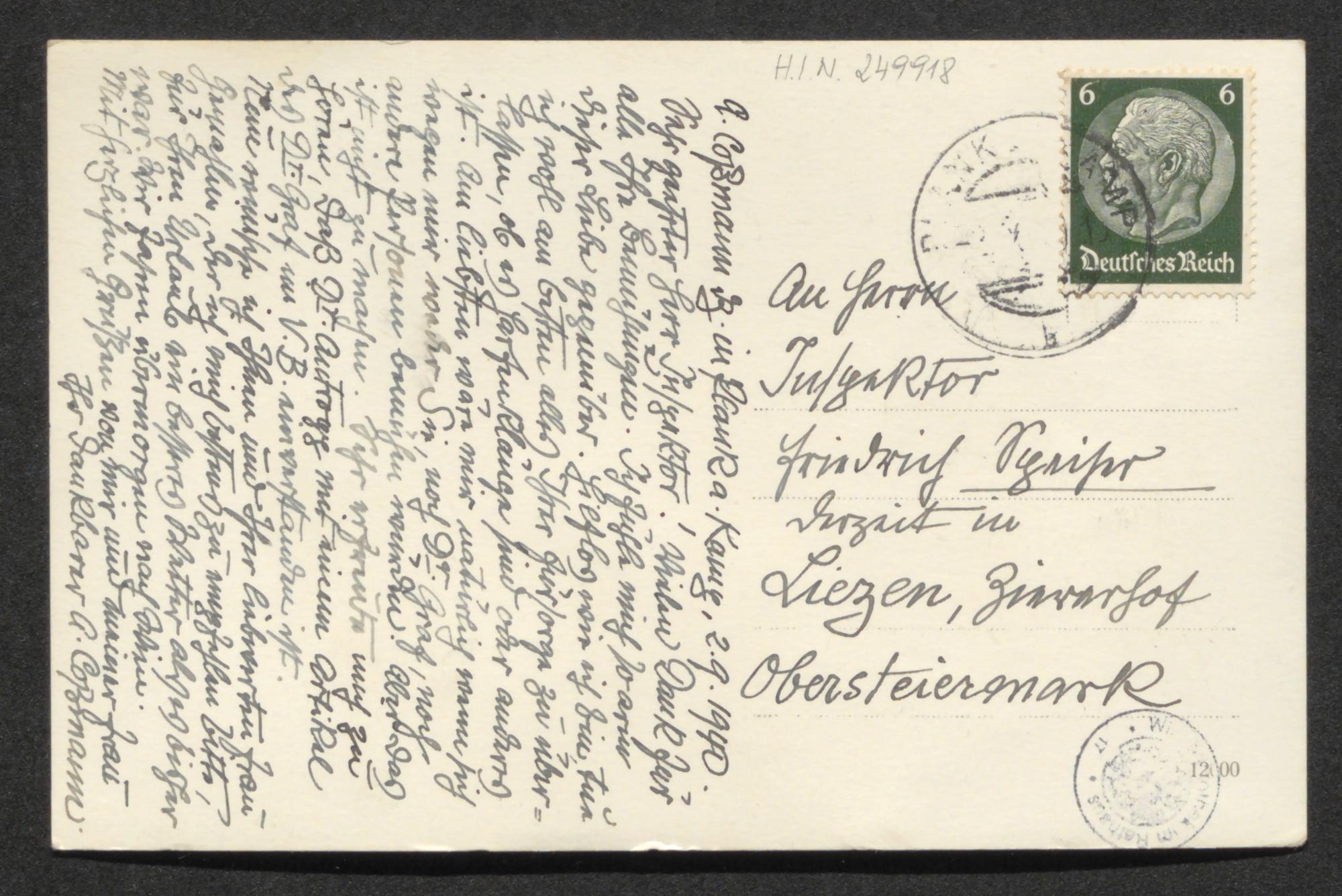 Ansichtspostkarte von Alfred Cossmann an Friedrich Speiser