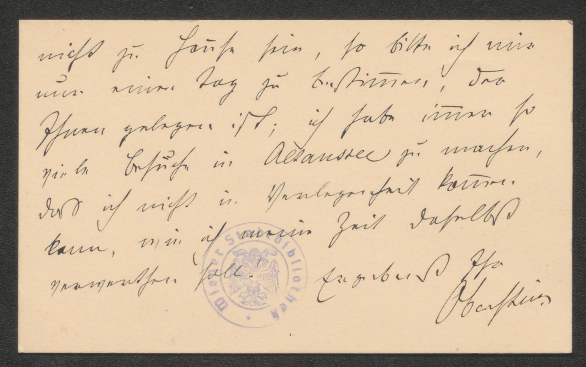 Visitenkarte an Ludwig August Frankl von Hochwart