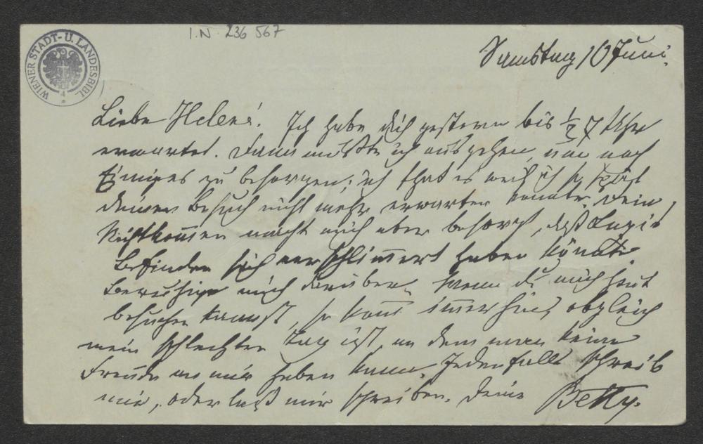 Korrespondenzkarte an Helene Bettelheim